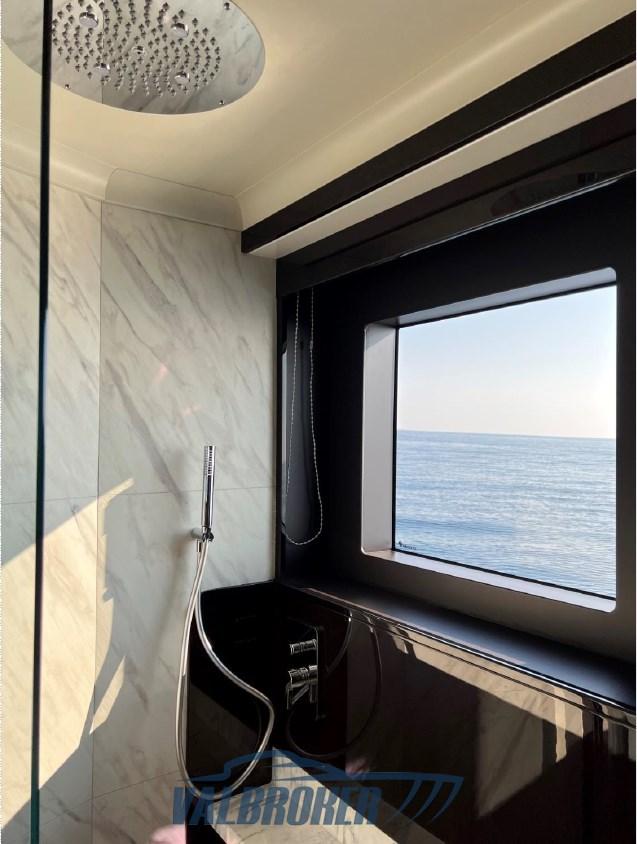 Anchor (inox ultra con catena80kg), Water pressure pump, Teak Side Decks, Deck Shower, Directional Spotlight (doppio comando), Hard top (soft top vetroresina bianco), Courtesy Lights, Underwater lights, Gangway (elettroidraulica a scomparsa, teak), Platform (teak, idraulica), Teak Cockpit, Shorepower connector, swimming ladder (integrata alla piattaforma), cockpit table (con copertura).