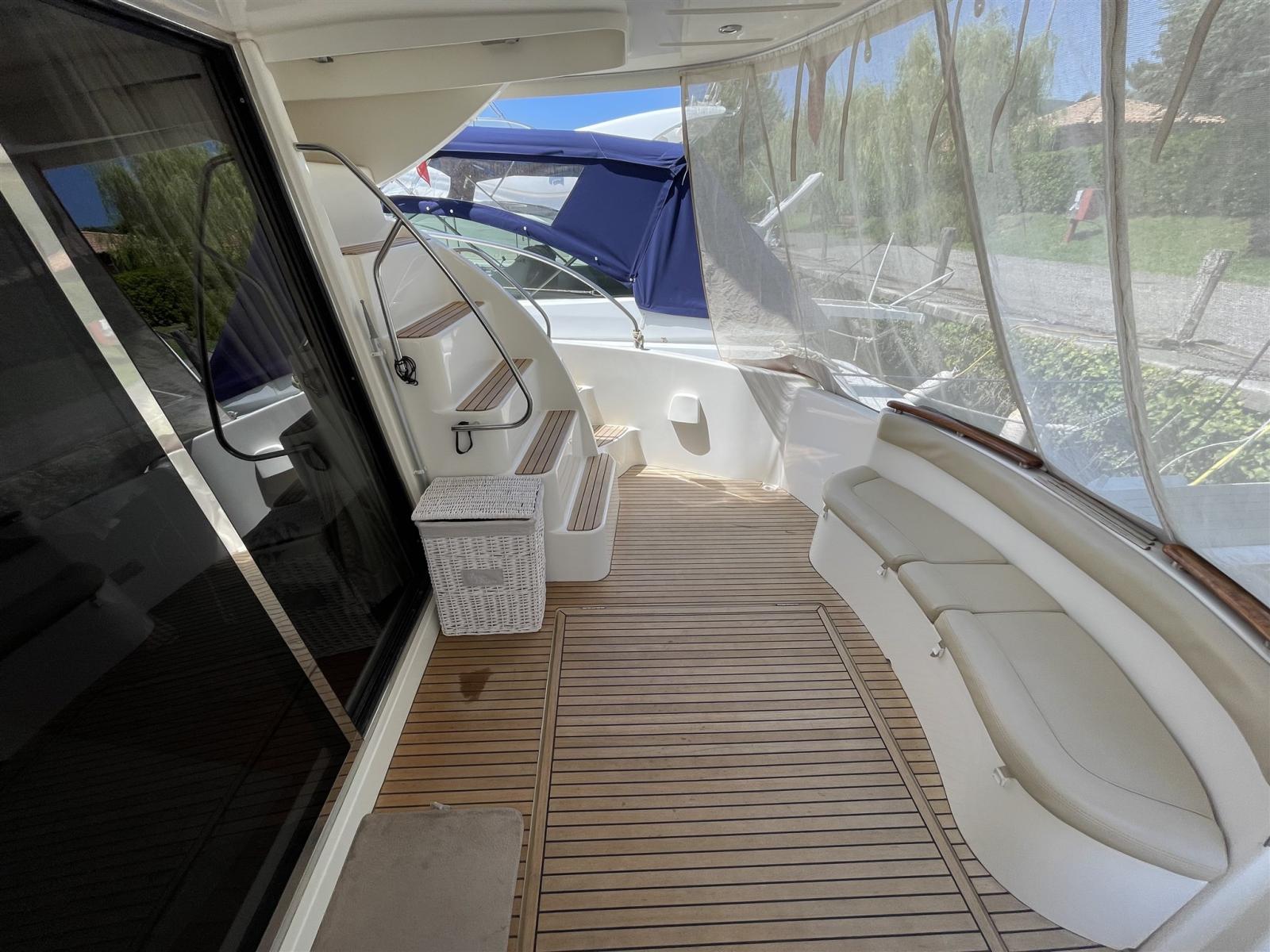 Fume/Gas Detector, Engine Alarm, Bilge Alarm, Hydraulic Flaps, Underwater lights, Gangway, Automatic Bilge Pump, Manual Bilge Pump, Teak deck, Entry door, Teak Cockpit, Shorepower connector, Water harbor connector system, Electric Windlass.
