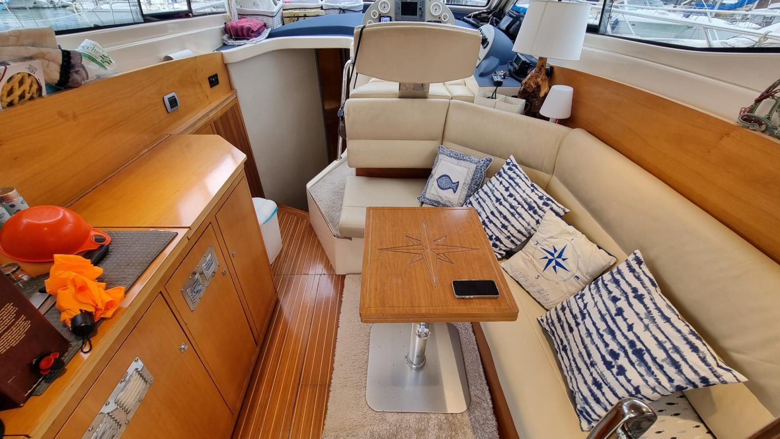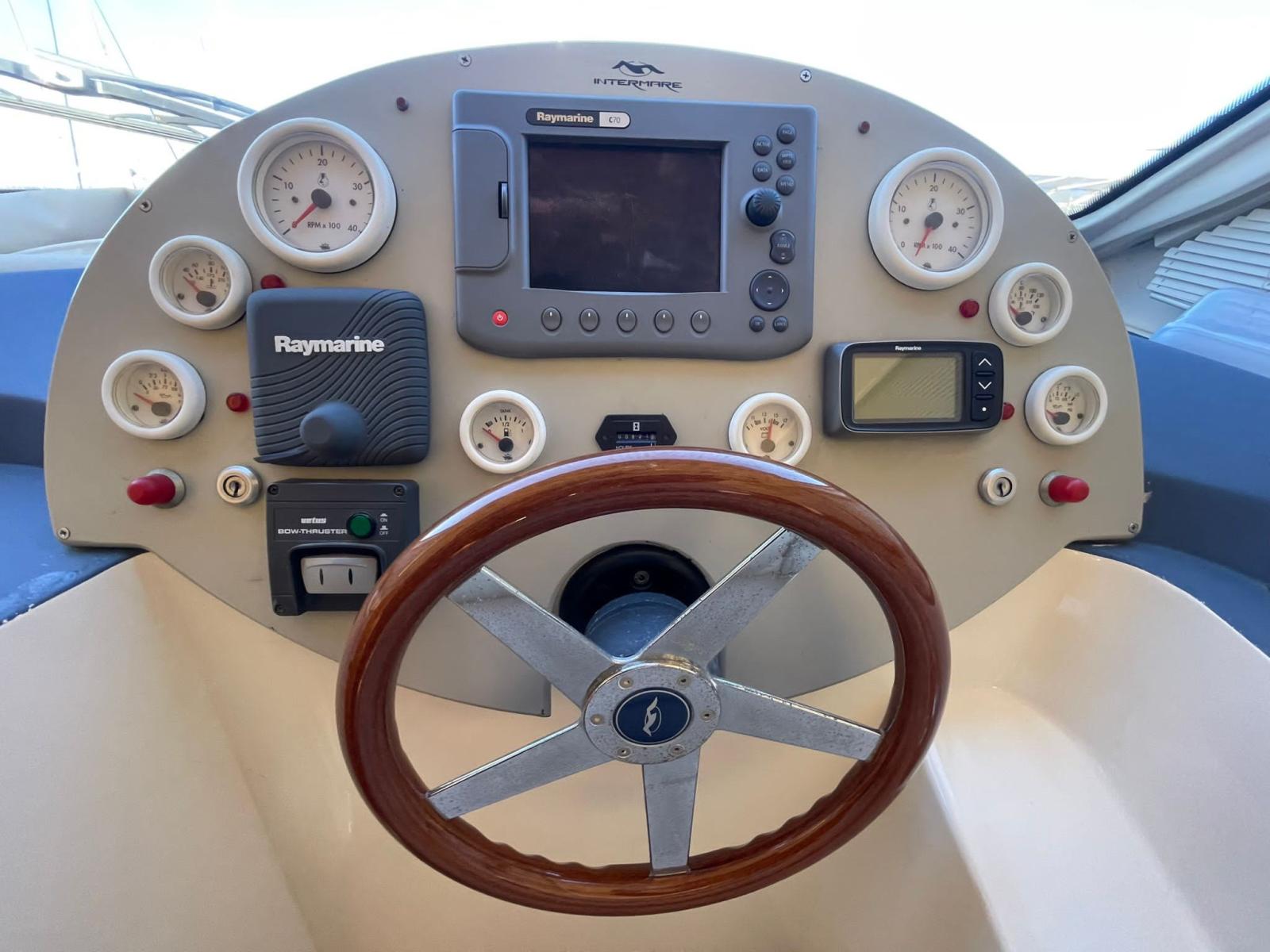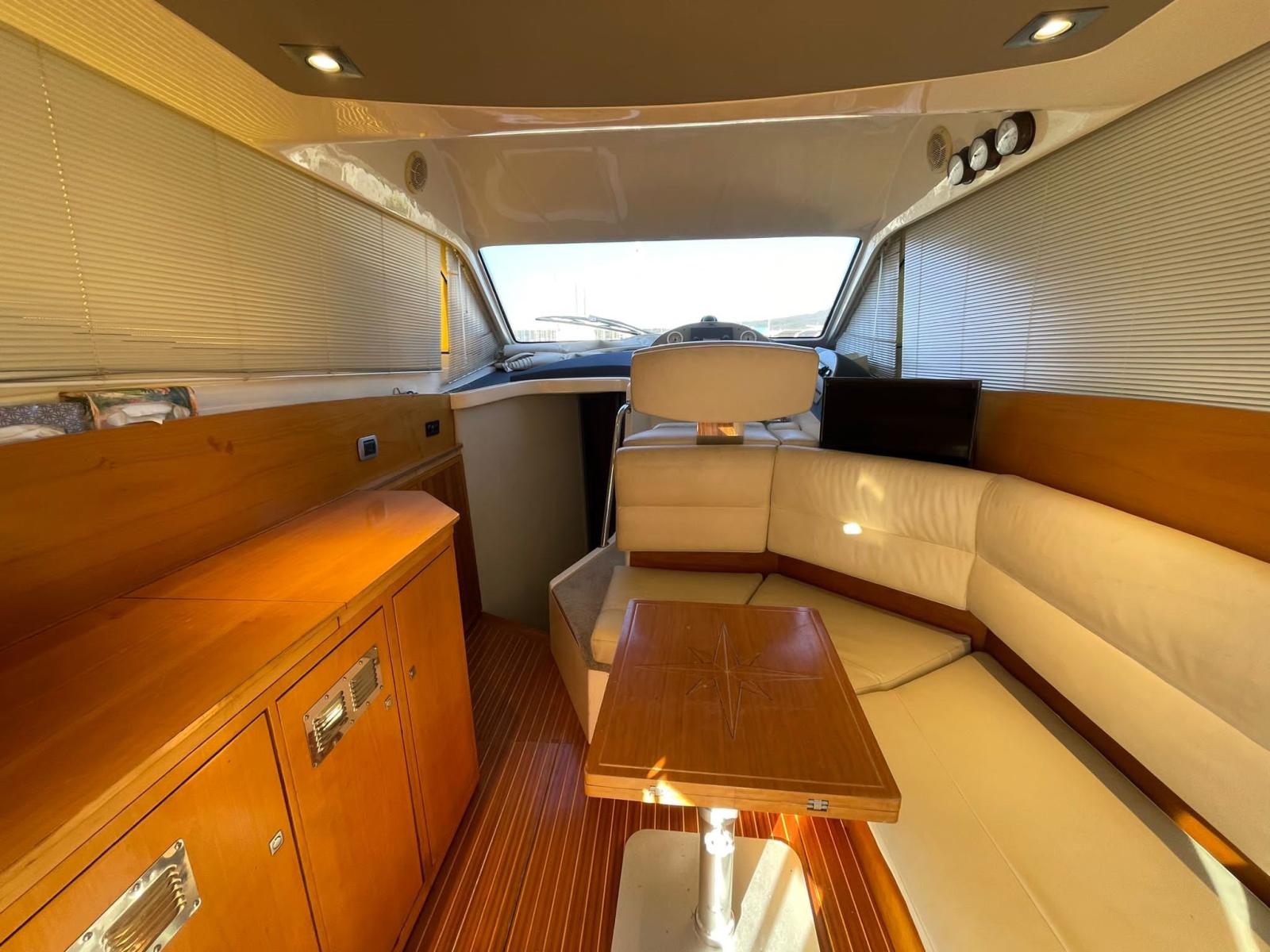 Engine Alarm, Bilge Alarm, Water pressure pump, Deck Shower, Hydraulic Flaps, Fire Extinguishing System, Courtesy Lights, Gangway (Idraulica), Platform, Automatic Bilge Pump, Manual Bilge Pump, Teak Cockpit (Flexiteak), Shorepower connector, Voltage Rectifier, Rollbar (Sul fly), Electric Windlass, swimming ladder, cockpit table, Horn.