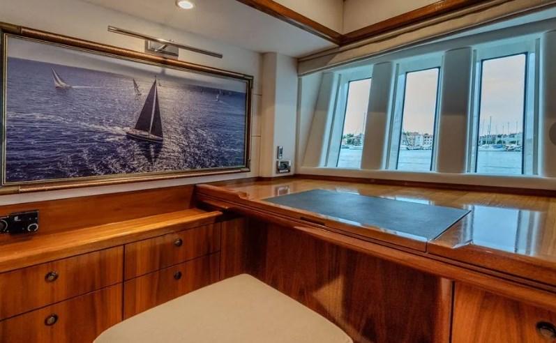 AIS, Rudder angle indicator, Radar Antenna, Electronic engine control, On-Board Computer, Chain counter, Display (Raymarine), DSC vhf, Depth Sounder (Raymarine), GPS (Raymarine), Interface, Log (Raymarine), MeteoFax, 2 Autopilot (Raymarine), Chartplotter (Raymarine), Plotter with GPS antenna (Raymarine), Co-pilot seat, GSM Phone, Satellite Phone.