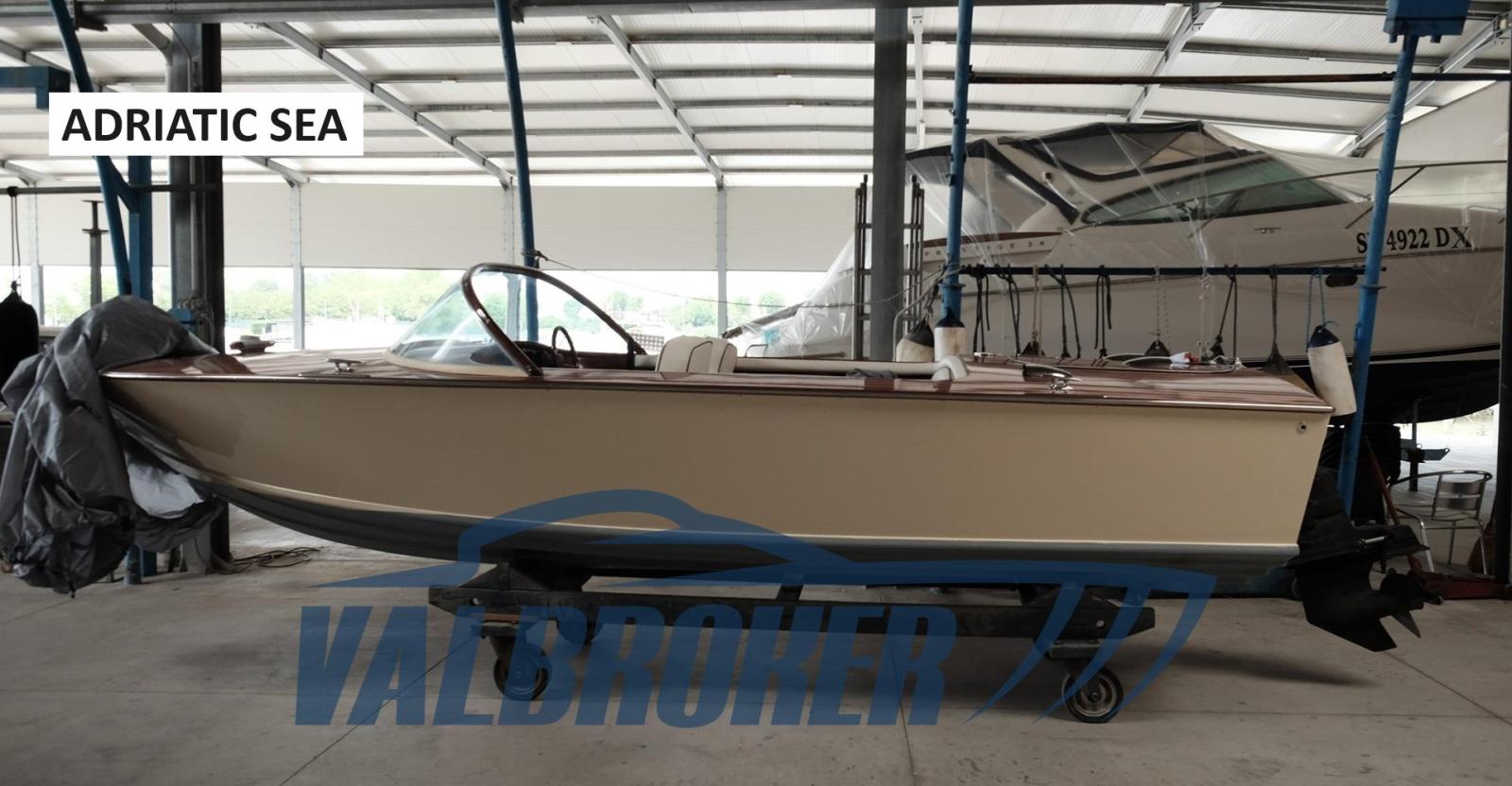 From the Pietà Adriatico of 1969. Vintage boat, completely renovated, visible in a shed in the Adriatic.