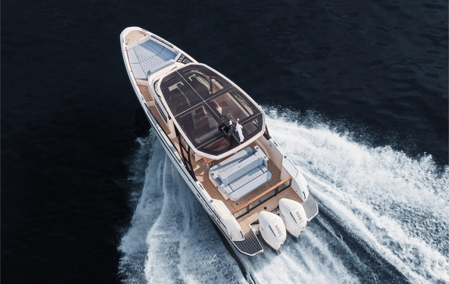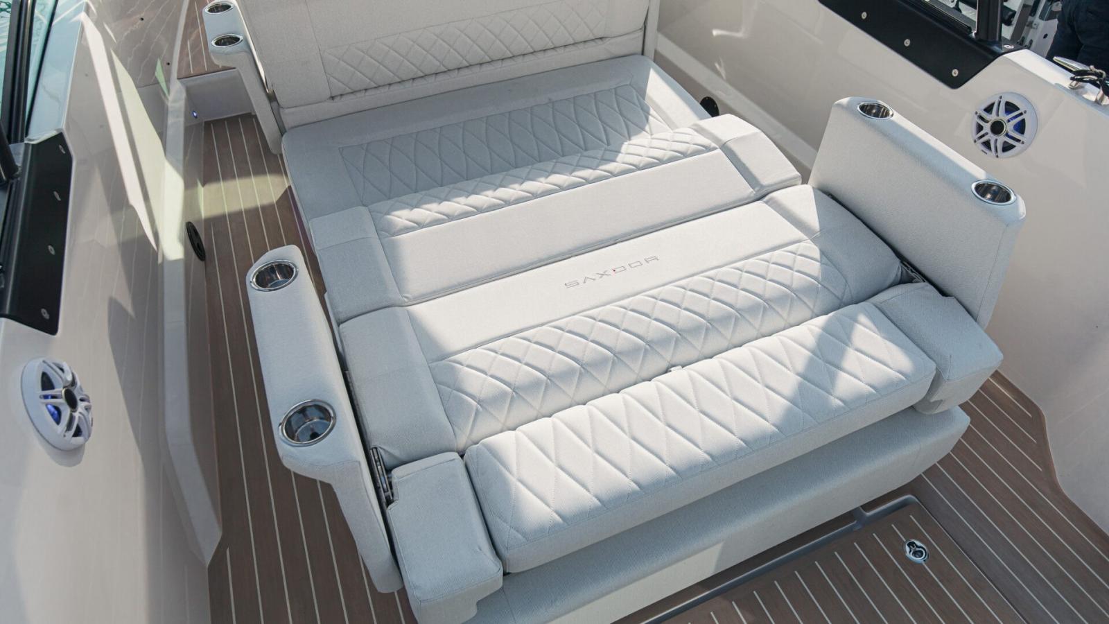 The Saxdor 270 GTO has been designed according to the Saxdor philosophy, with a lightweight double-redan hull that behaves softly on the water. This model offers the performance, speed and fuel efficiency that previous versions have been known for. The inverted bow with a very deep V-shaped entry reduces the impact with the waves, improves the overall stability of the boat and makes driving more enjoyable. The light and robust construction, made with the vacuum infusion technique, allows you to have a boat that can be easily trailered and simple to launch or recover. The 270 GTO is the ideal choice for those who love the sun: thanks to the two sundecks – one at the bow and one at the stern – you will have ample space to relax. The rear sundeck, if necessary, can be reconfigured into a comfortable dinette. Contact us for more details