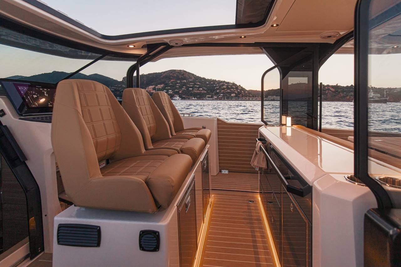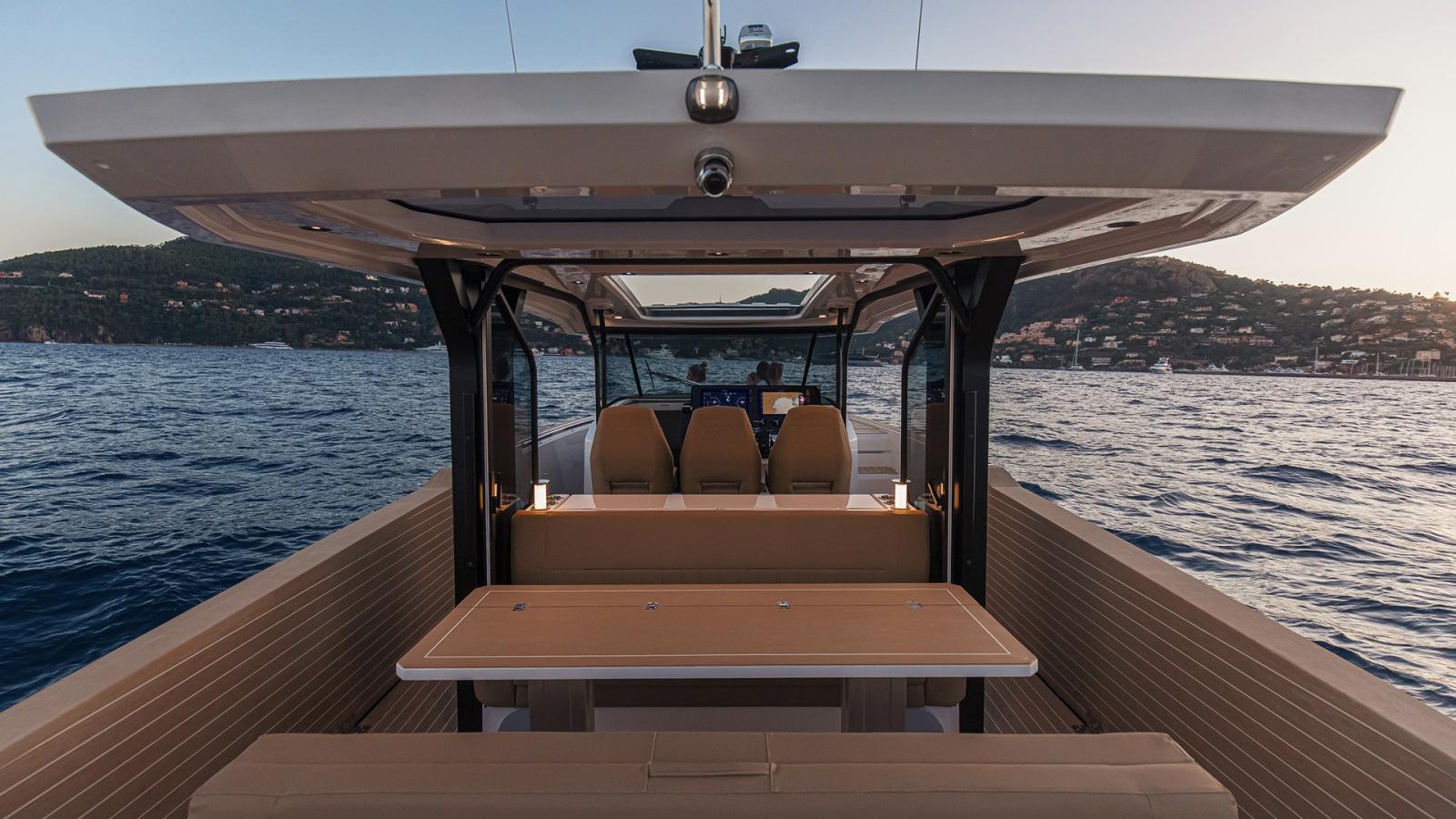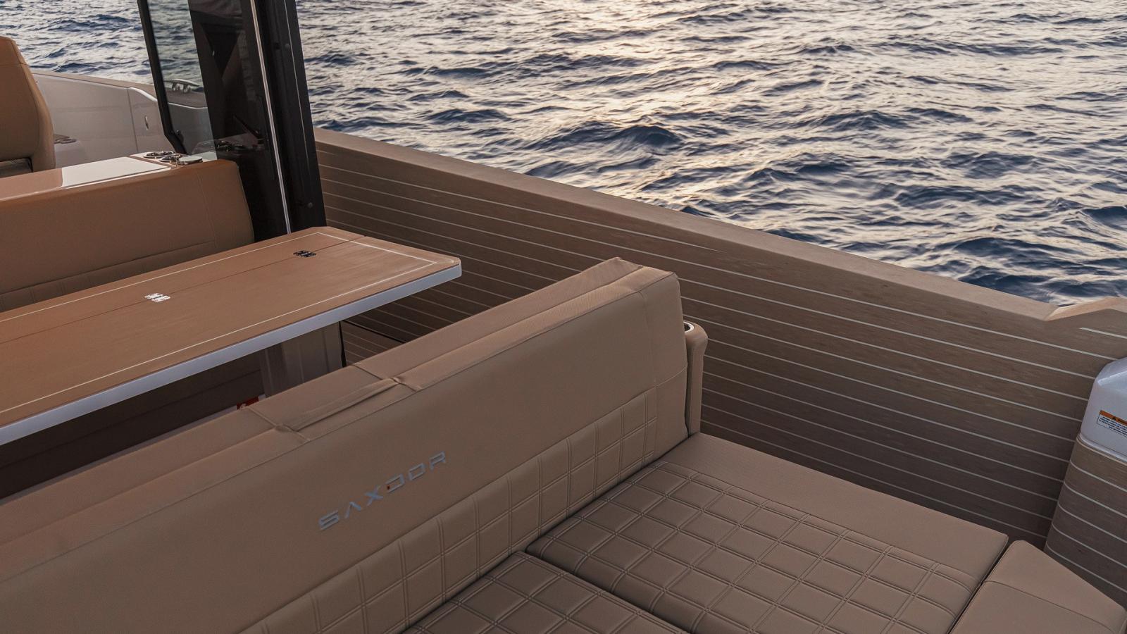 The Saxdor 400 GTS offers the ultimate open-air experience: a full walk-around deck, a sleek steering console protected by glass and folding terraces that blur the boundary between boat and sea. With modular seating and convertible sundecks, every moment on board is transformed, whether you want to relax, socialise or race at full throttle. The 400 GTS is powered by two outboard engines (up to 850 hp) and sails on a double-step hull with a 21° V, ensuring dynamic speed and exceptional responsiveness. Built with a lightweight fiberglass technique with vacuum infusion, it is designed for maximum comfort even during the longest days at sea. Do not hesitate to contact us to book yours!