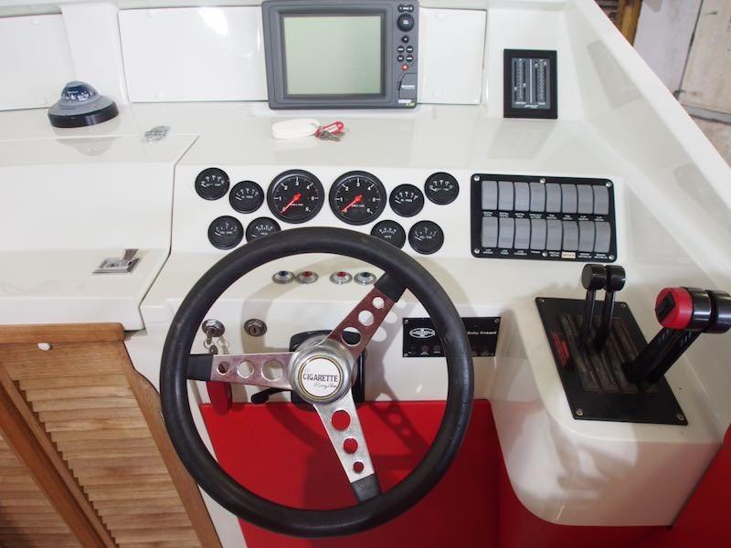 Plotter with GPS antenna, Control panel, Co-pilot seat, Engine Measuring Instruments.