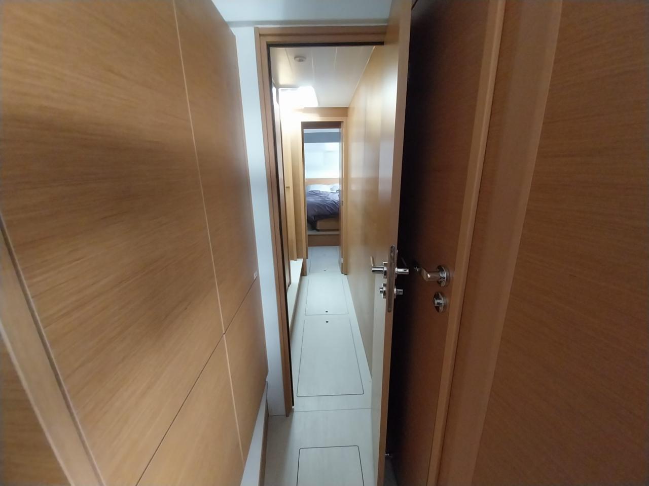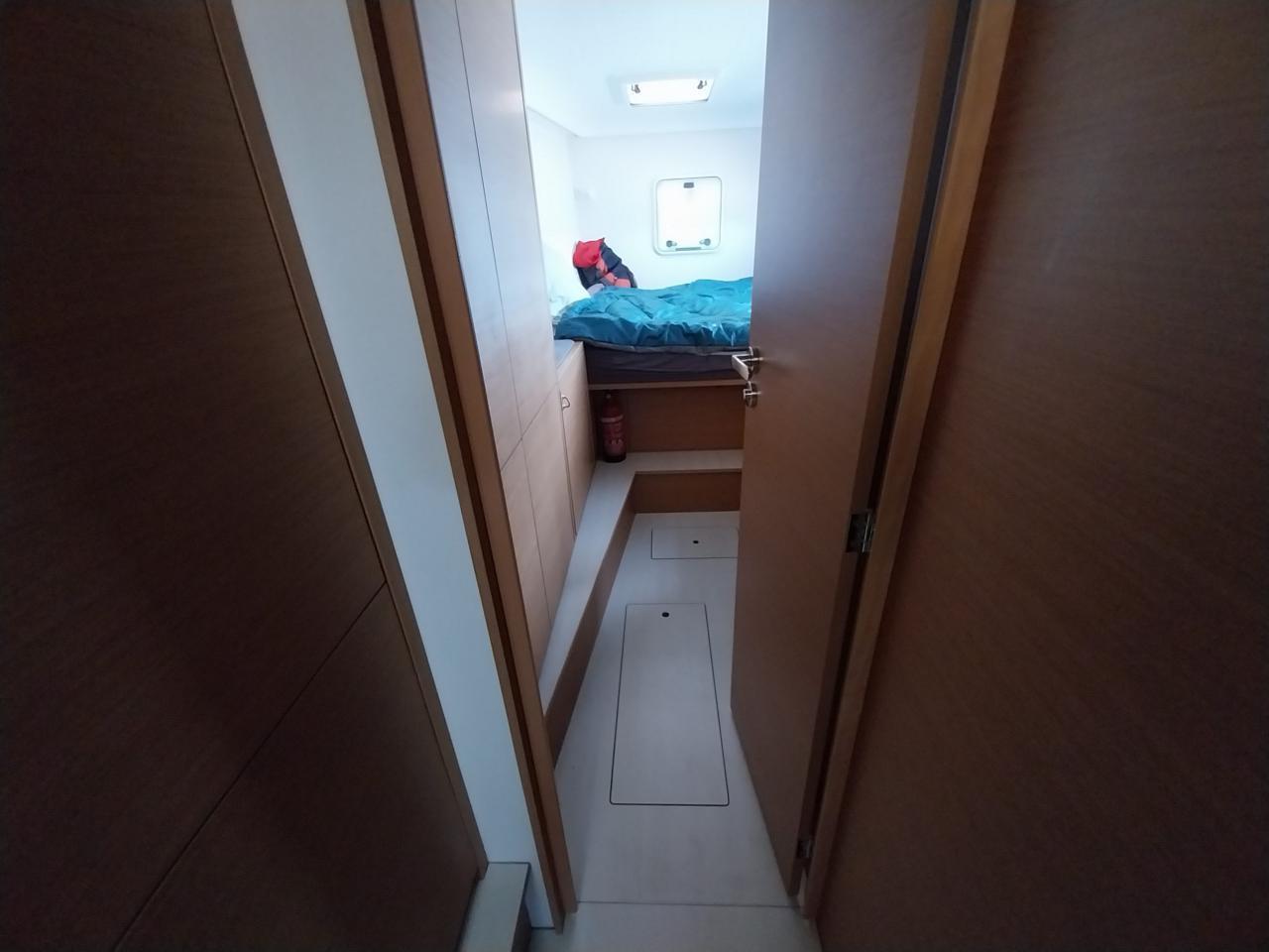 One aft double cabin with trunk under the berth and storage space