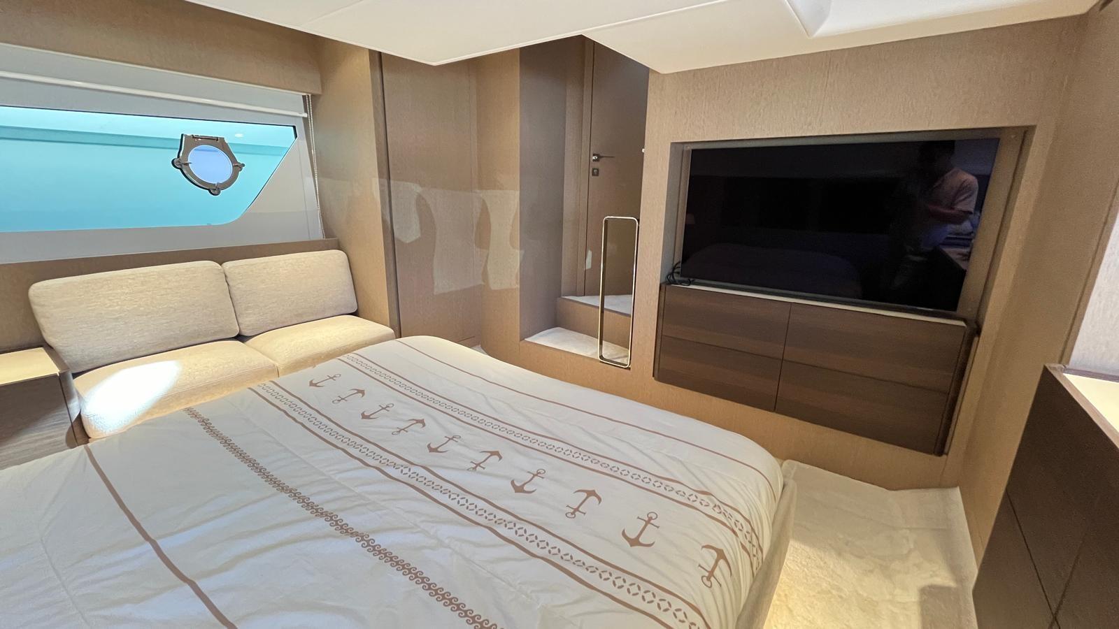 Engine Alarm, Bilge Alarm, Deck Shower, Electric Flaps, Fire Extinguishing System, Flaps Indicators, Courtesy Lights, Underwater lights, Gangway (Elettroidraulica), Platform (Tender Lift), Waste Water Tank Drain Pump, 4 Automatic Bilge Pump, 4 Electric Bilge Pump, Seawater Pump, Teak Cockpit, Shorepower connector, Water harbor connector system, Stabilizers (Seakeeper 6), cockpit table, Living Room Foldable Table, 2 Stern Winches.
