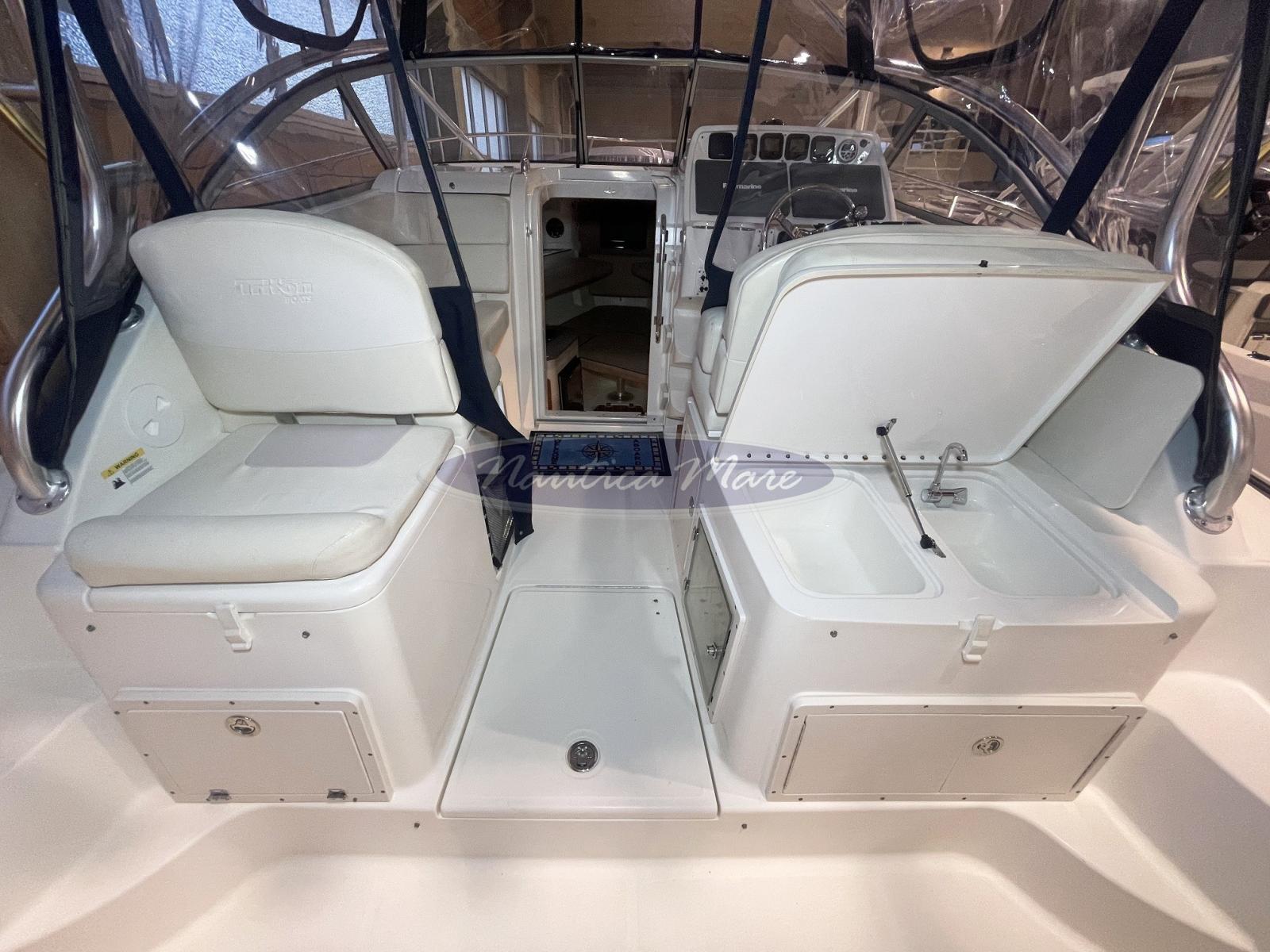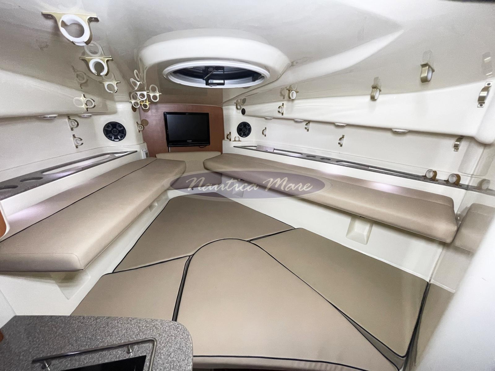 Cushions, Stern Cushions (compresa seduta a scomparsa a poppa e poggiagambe perimetrale nel pozzetto), Bow Cushions, Cockpit Cushions, T-Top Cover (teli di chiusura hard-top), Instrument Cover, Sunshade (parasole nel pozzetto con pali inox).
