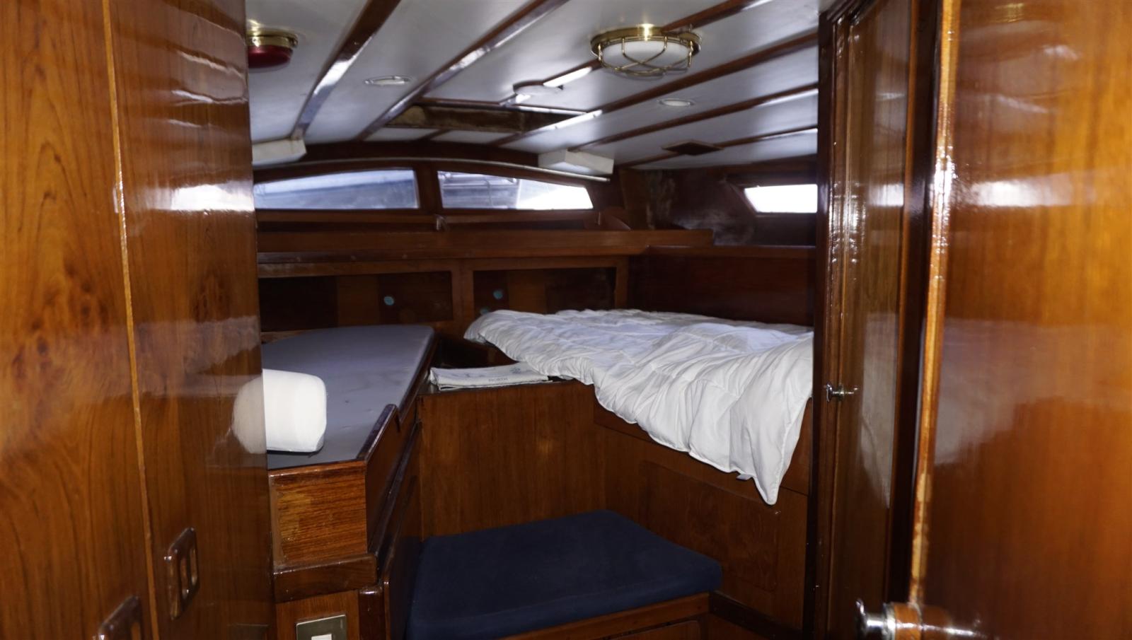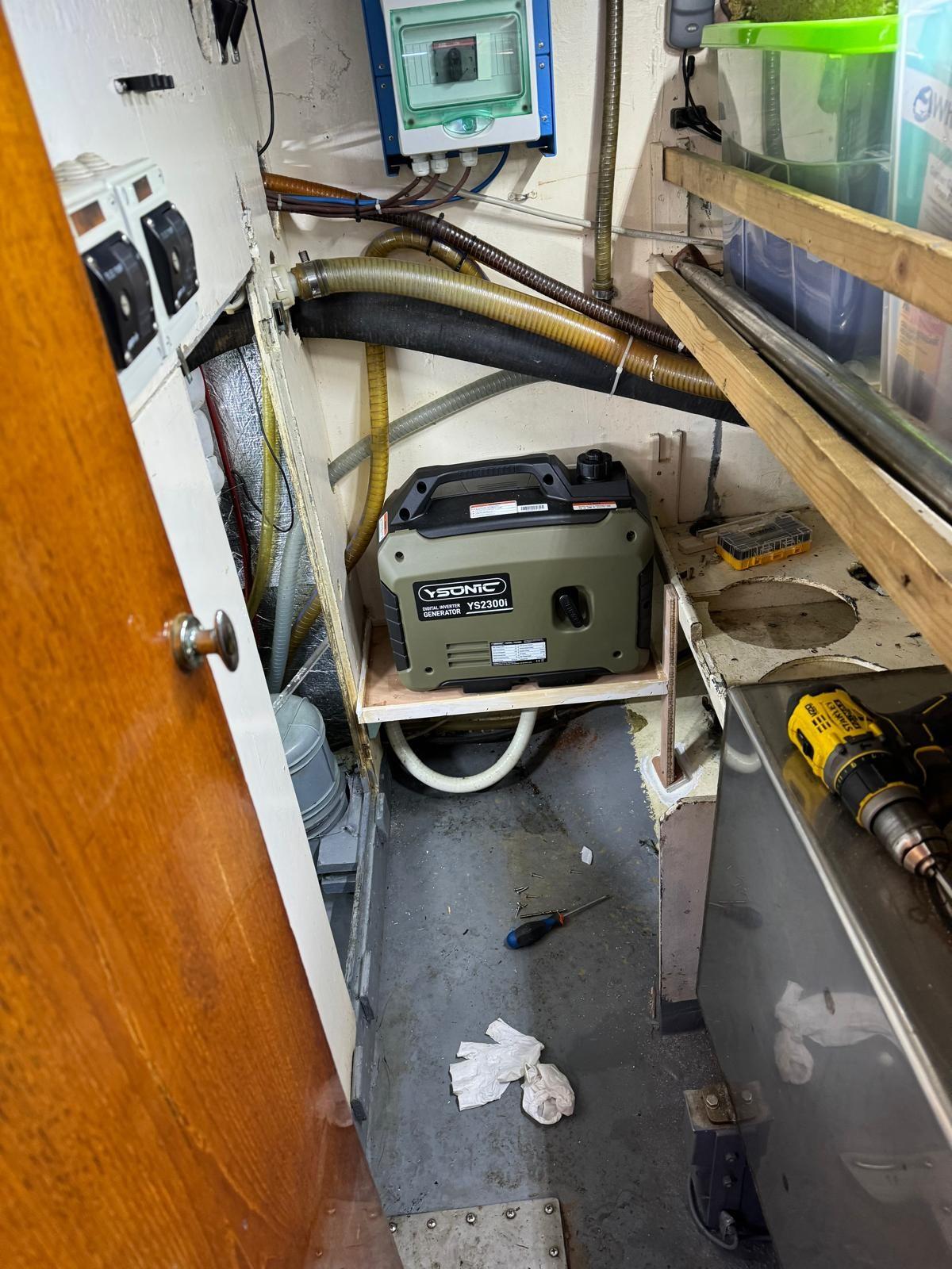 Alternator (new), Anchor (70 kg + 120 m 12mm chain), Water pressure pump, Batteries (2024/25), Deck Shower, Bow Thruster (rev. 2024), Wind Generator, Outboard Crane, Outboard engine for tender (TOHATSU 9.9), Solar panels, Fenders, Gangway, Platform, Manual Bilge Pump, Shorepower connector, Electric Windlass, swimming ladder (+ bow ladder), cockpit table, Tender (RIB), Winch, Winch Electric (2 x), Windex.