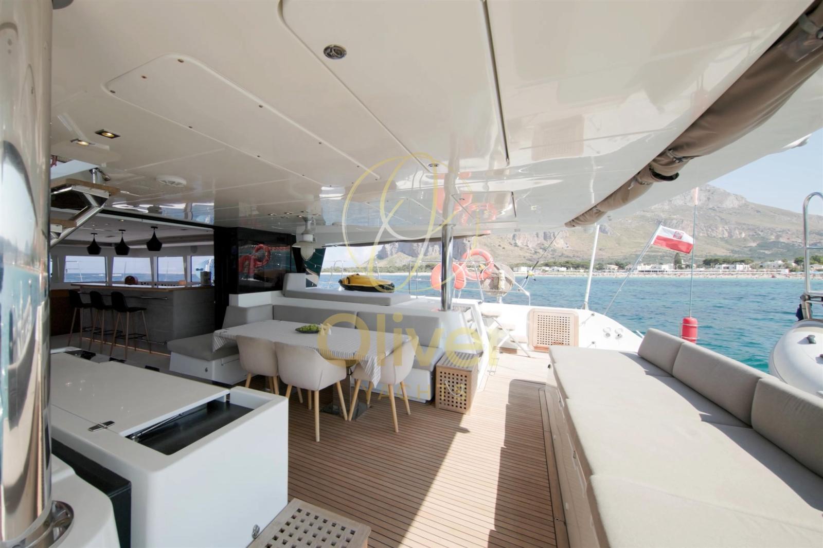 This version stands out for its extremely complete equipment and technical management geared towards long-range sailing. The vessel is fully equipped for ocean navigation, with professional B&G instrumentation, MF/HF communication systems, satellite phone, Navtex and redundant helm stations. Nothing is missing on board: Starlink for high-speed internet even offshore, video surveillance, advanced security systems and lifestyle equipment of a true super-cat