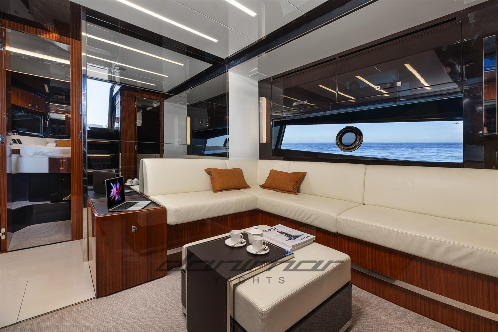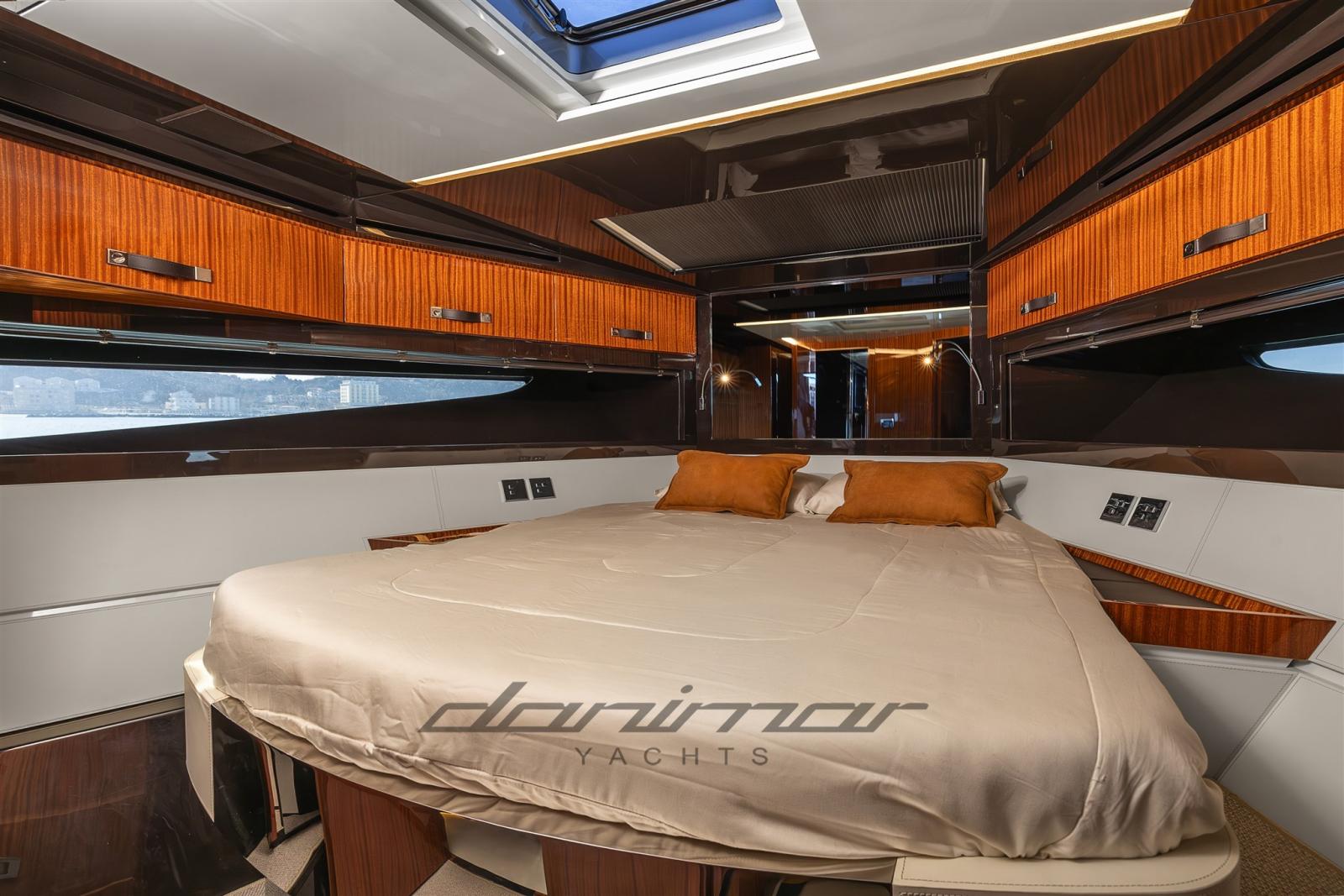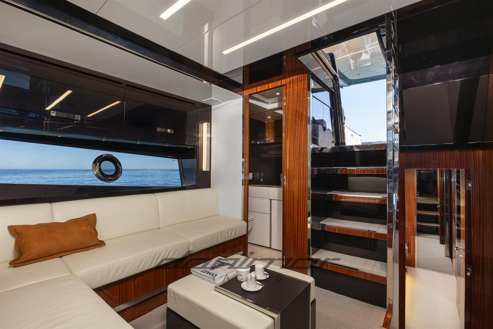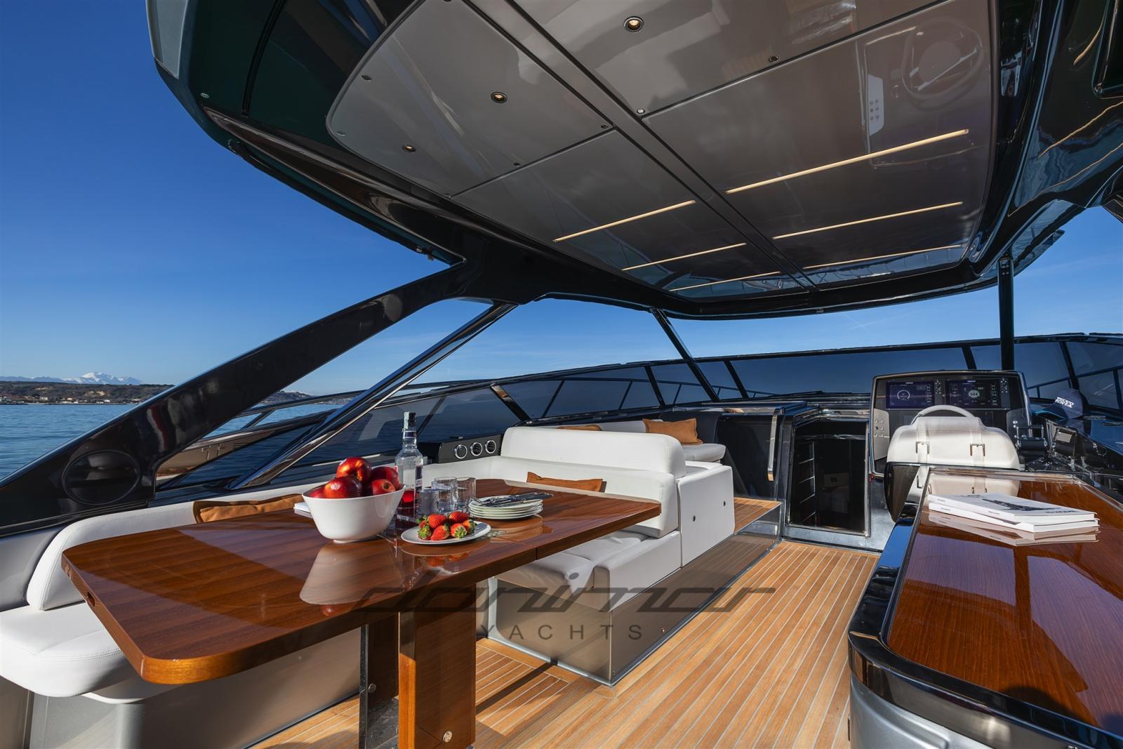 The refined and bright interiors accommodate three cabins and three bathrooms, embellished with fine finishes in glossy lacquered wood and steel, an authentic expression of Italian craftsmanship excellence.