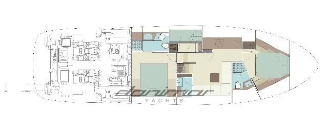 Powered by two 1,200 HP MAN engines, it reaches a maximum speed of about 38 knots, offering brilliant, safe and pleasant navigation even when cruising.