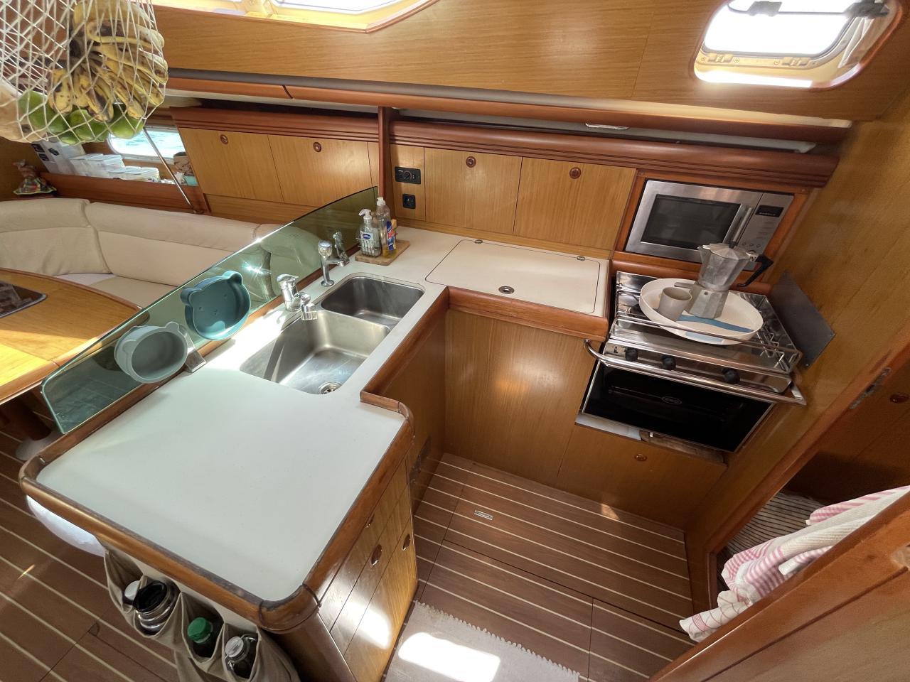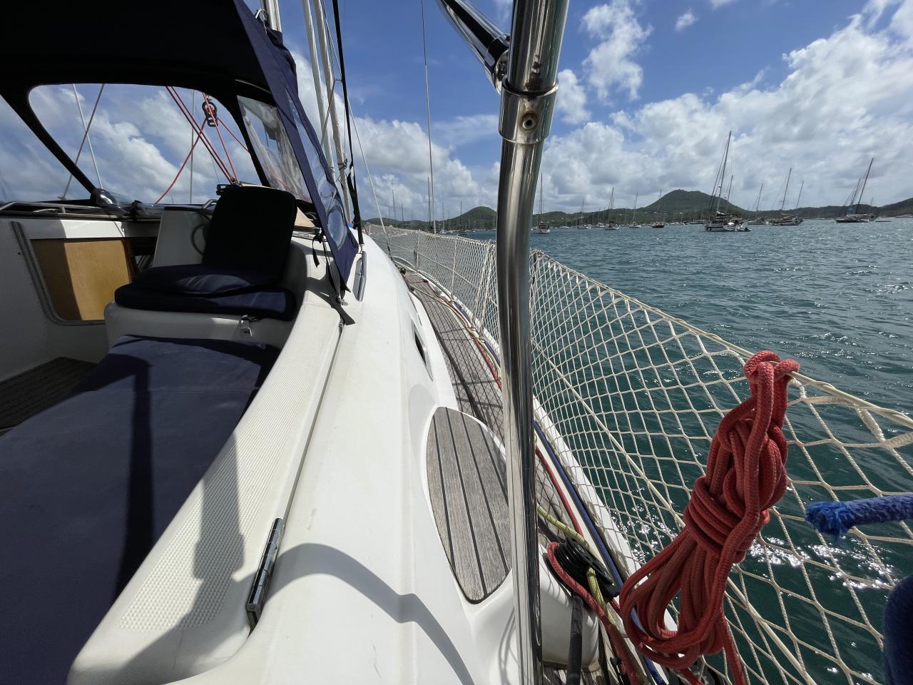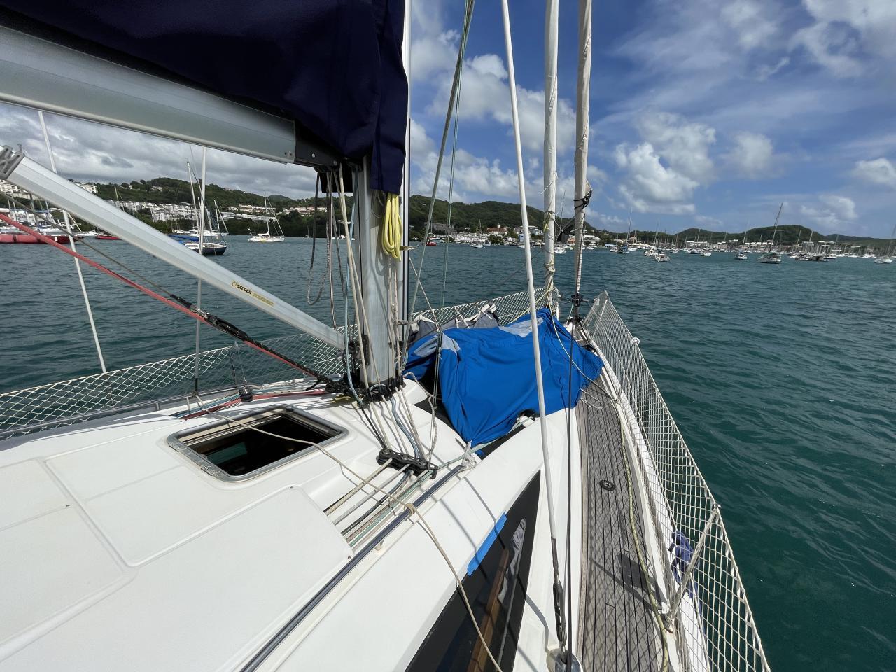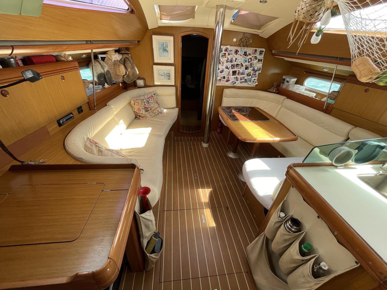 Let yourself be seduced by its space and light. Le carré principal, with its panoramic deckhouse and wide portholes, offers an abundance of light and ventilation. French flag, French Caribbean VAT and dock dues paid, visible in Martinique A&C Yacht is the official JEANNEAU dealer in the Caribbean.