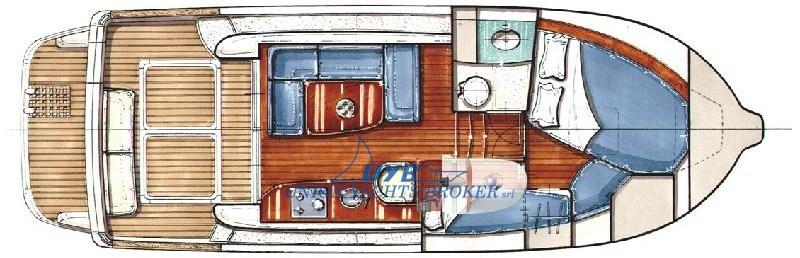 Double cabin in the bow, toilet and additional berth. Dinette convertible into a bed.