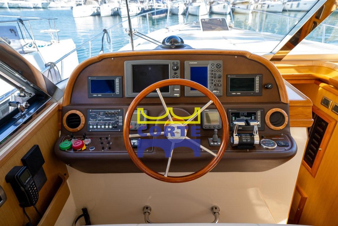 Radar Antenna, Compass (Riviera), Electronic engine control, Display, GPS (Geonav 11), Autopilot (Raymarine ST6002), Radar (Furuno Navnet Vx2), VHF Radio (Simrad Rs 82), Co-pilot seat.