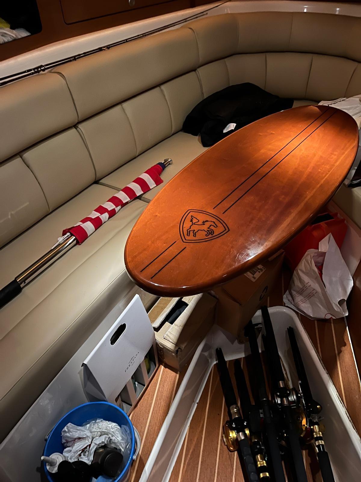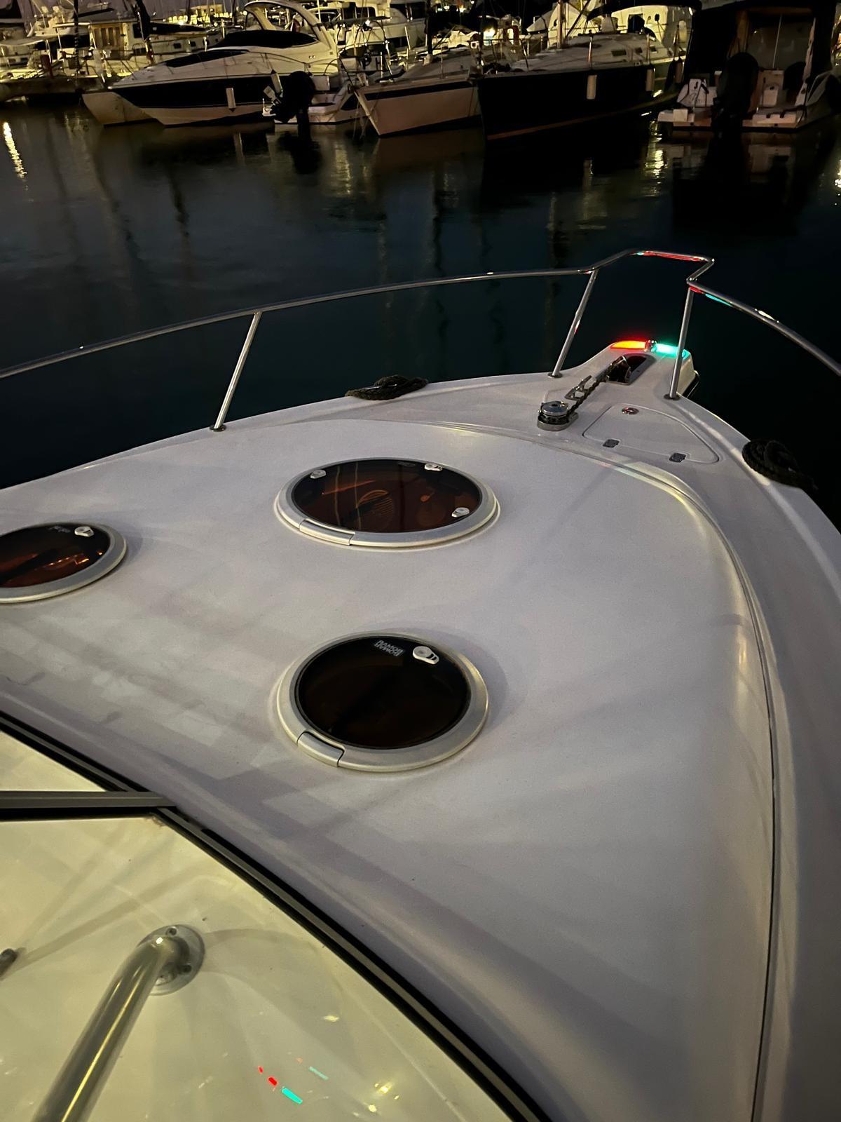 Engine Alarm, Water pressure pump, Special Colour, Deck Shower, Washbasin in the cockpit, Courtesy Lights, Automatic Bilge Pump, Shorepower connector, Electric Windlass, Living Room Foldable Table, Horn.