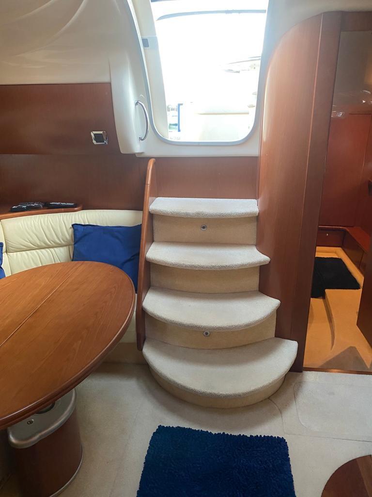 Engine Alarm, Bilge Alarm, Water pressure pump, Deck Shower (calda e fredda), Electric Flaps, Tender Garage, Flaps Indicators, Washbasin in the cockpit, Courtesy Lights, Gangway, Platform, Automatic Bilge Pump, Teak Cockpit, Shorepower connector, Voltage Rectifier, Rollbar, Electric Windlass, swimming ladder, cockpit table, Living Room Foldable Table, Horn.