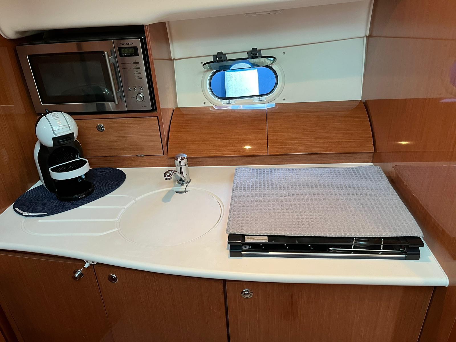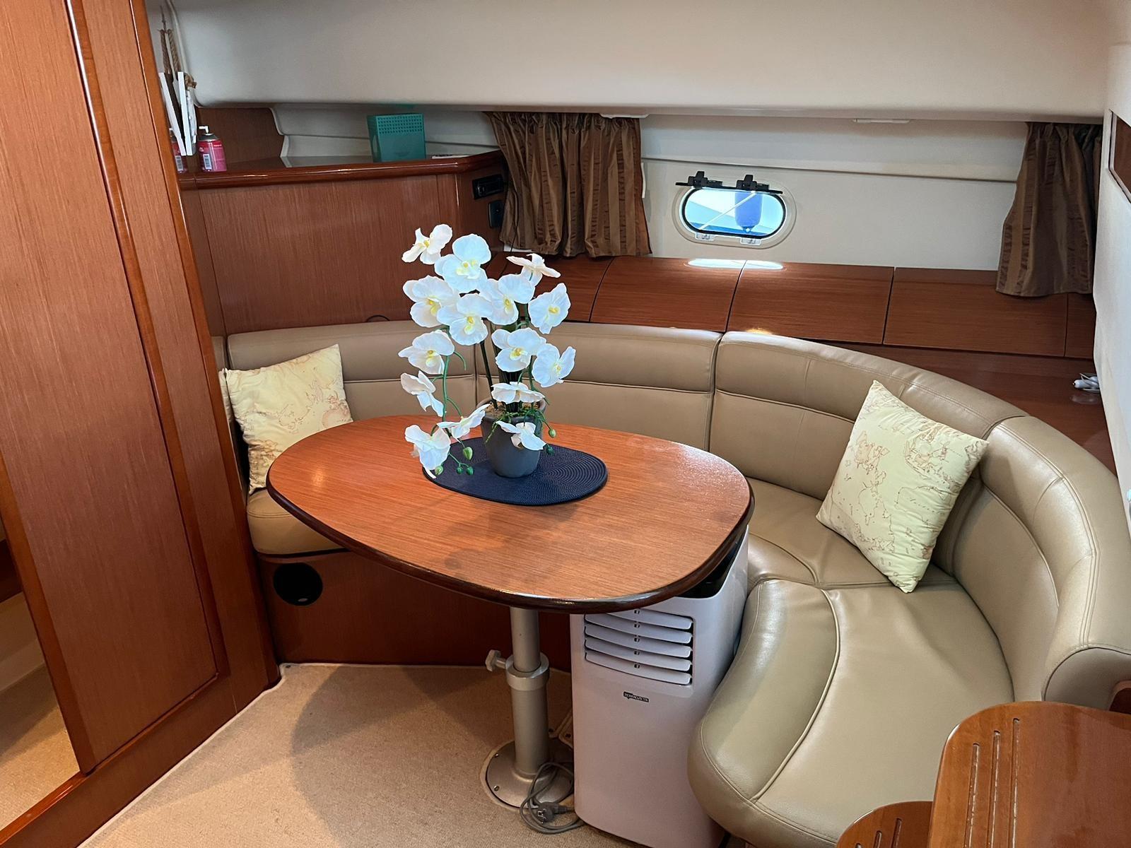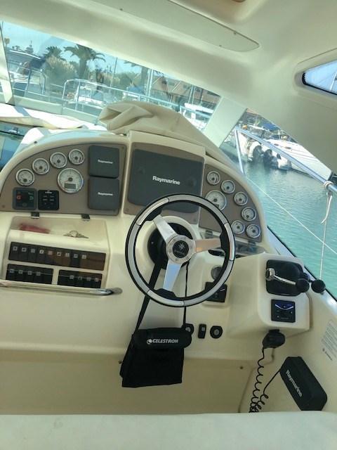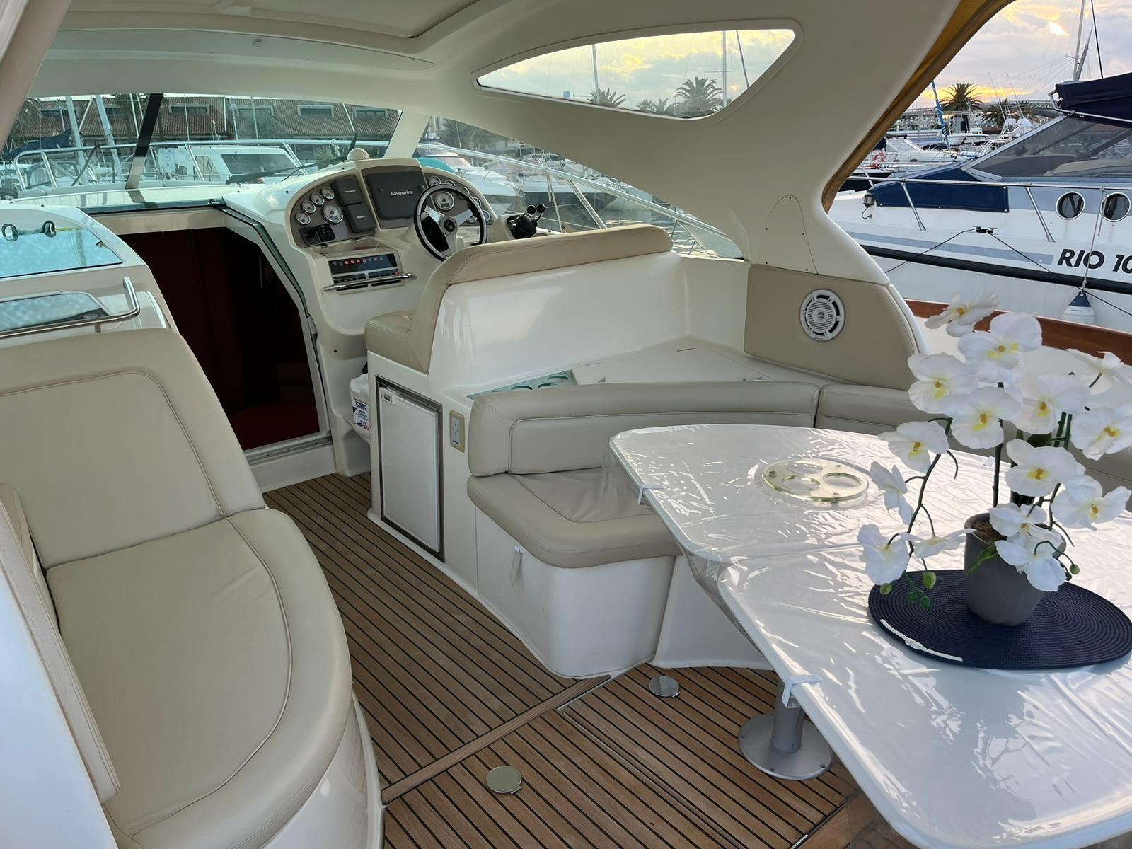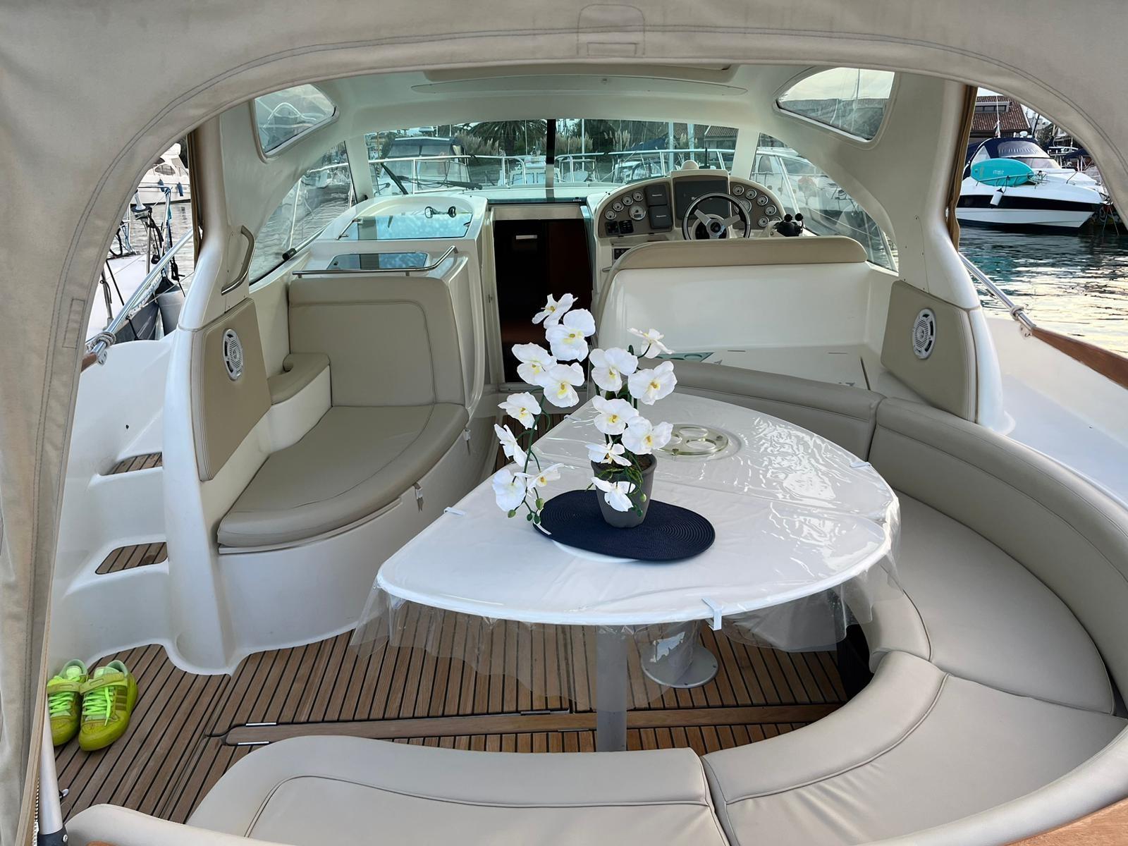 Engine Alarm, Water pressure pump, Deck Shower, Hydraulic Flaps, Hard top, Washbasin in the cockpit, Courtesy Lights, Platform, Automatic Bilge Pump, Manual Bilge Pump, Teak Cockpit, Shorepower connector, Water harbor connector system, Rollbar, Electric Windlass, Saddles for tender, cockpit table, Living Room Foldable Table, Tender, Horn.