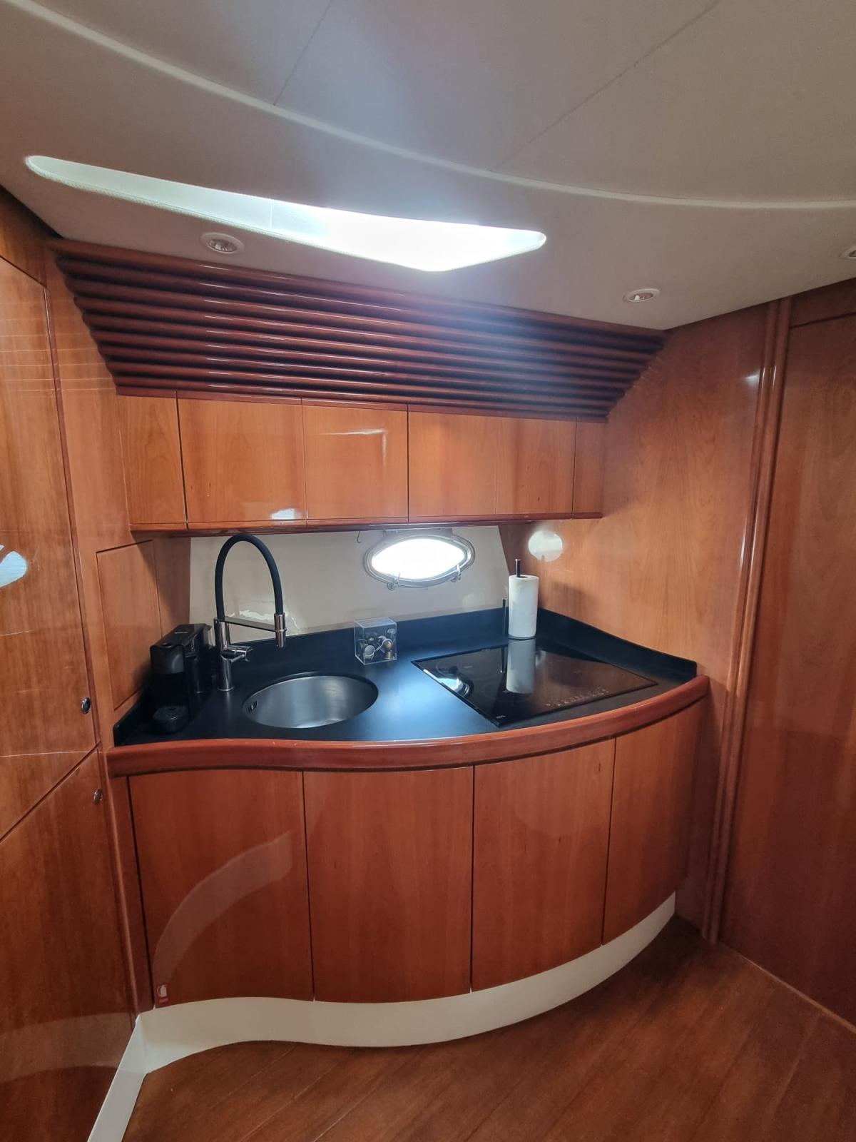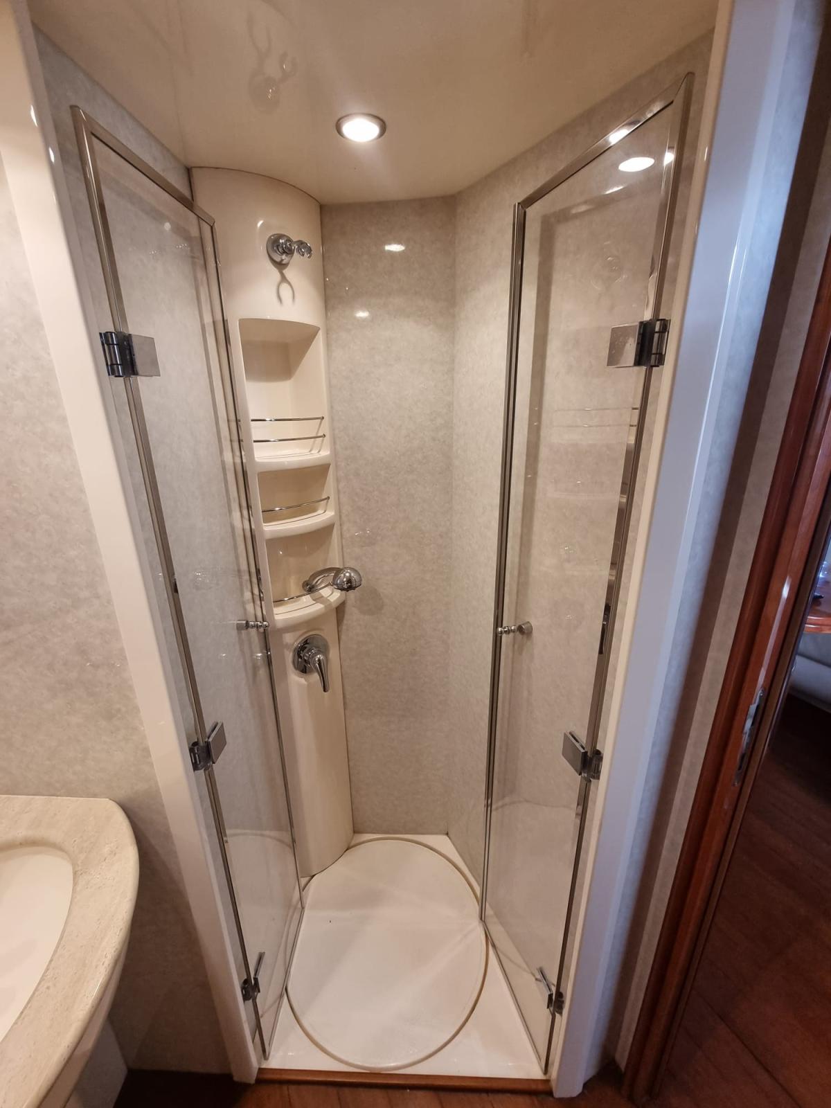 Fume/Gas Detector, Engine Alarm, Bilge Alarm, Electric Engine Compartment Opening, Water pressure pump, Special Colour, Deck Shower, Directional Spotlight, Hydraulic Flaps, Hard top, Fire Extinguishing System, Flaps Indicators, Washbasin in the cockpit, Courtesy Lights, Underwater lights, Automatic Bilge Pump, Manual Bilge Pump, Teak Cockpit, Shorepower connector, Electric Windlass, swimming ladder, Saddles for tender, cockpit table, Living Room Foldable Table, Horn, Winch, Stern Winches, Bow Winches.