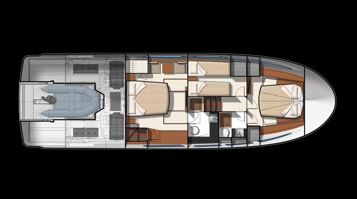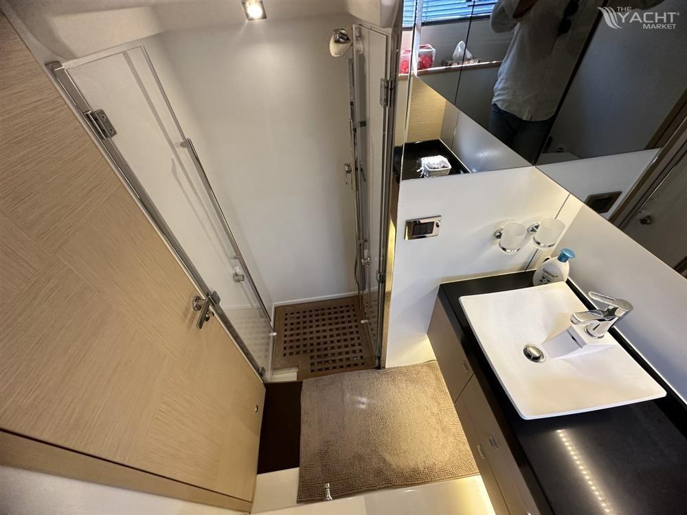 - full-beam owner's cabin amidships with large windows and bathroom with shower;