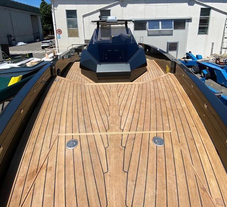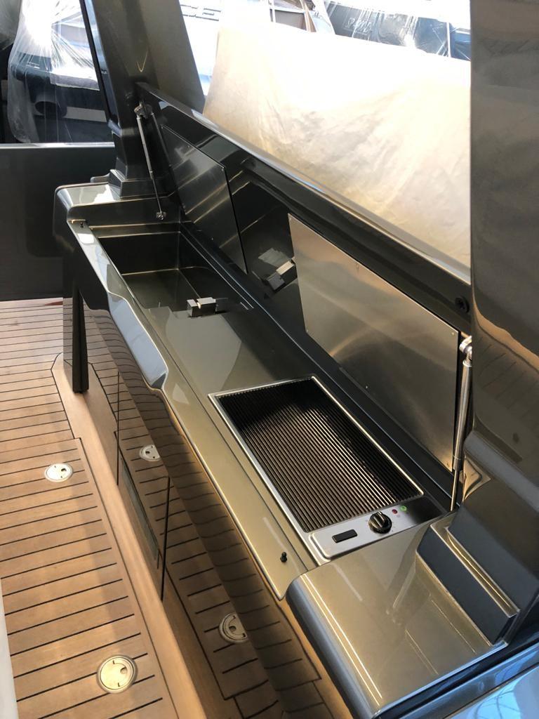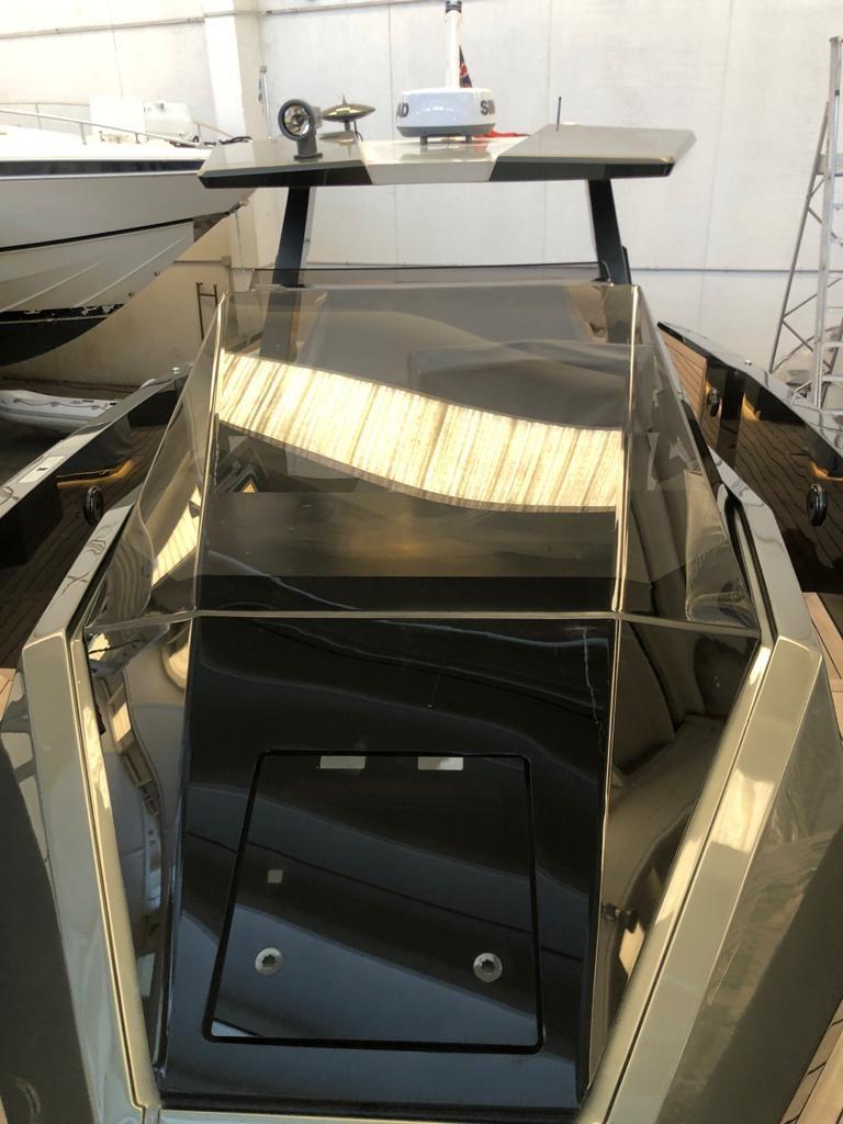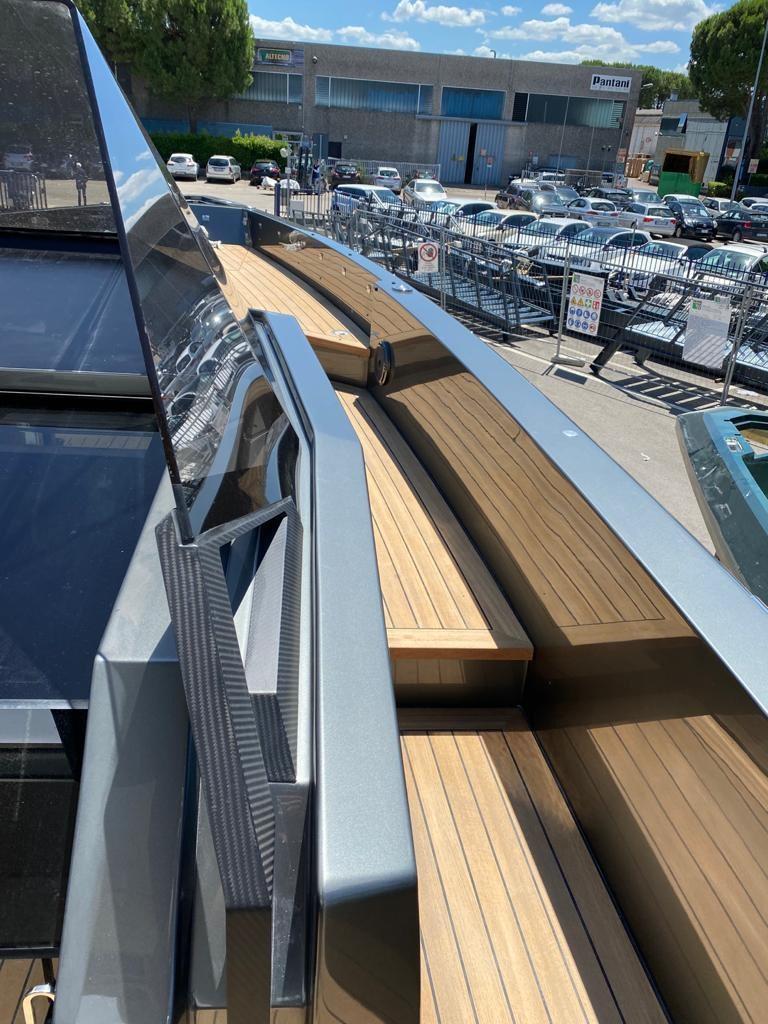 Engine Alarm, Bilge Alarm, Water pressure pump, Teak Side Decks, Deck Shower, Directional Spotlight, Hydraulic Flaps, Hard top, Fire Extinguishing System, Flaps Indicators, Courtesy Lights, Underwater lights, Gangway, Teak Cockpit, Shorepower connector, Electric Windlass, swimming ladder, cockpit table.