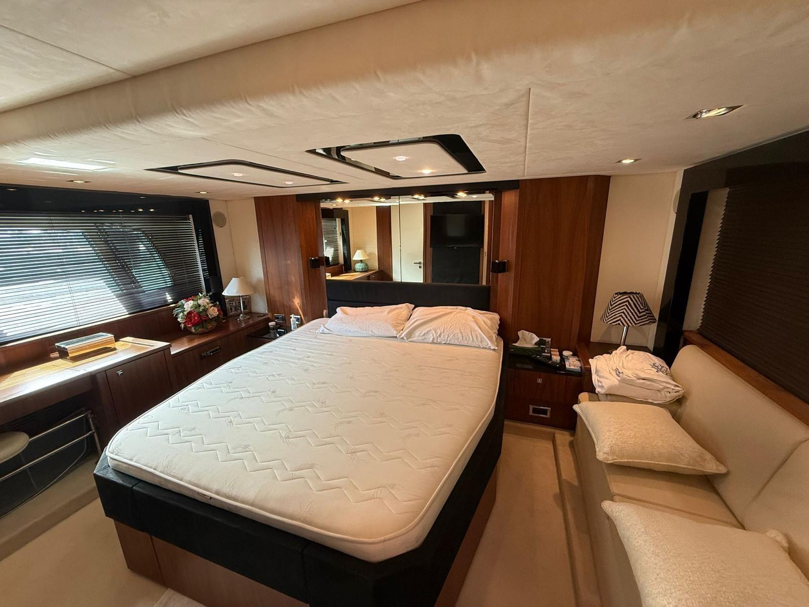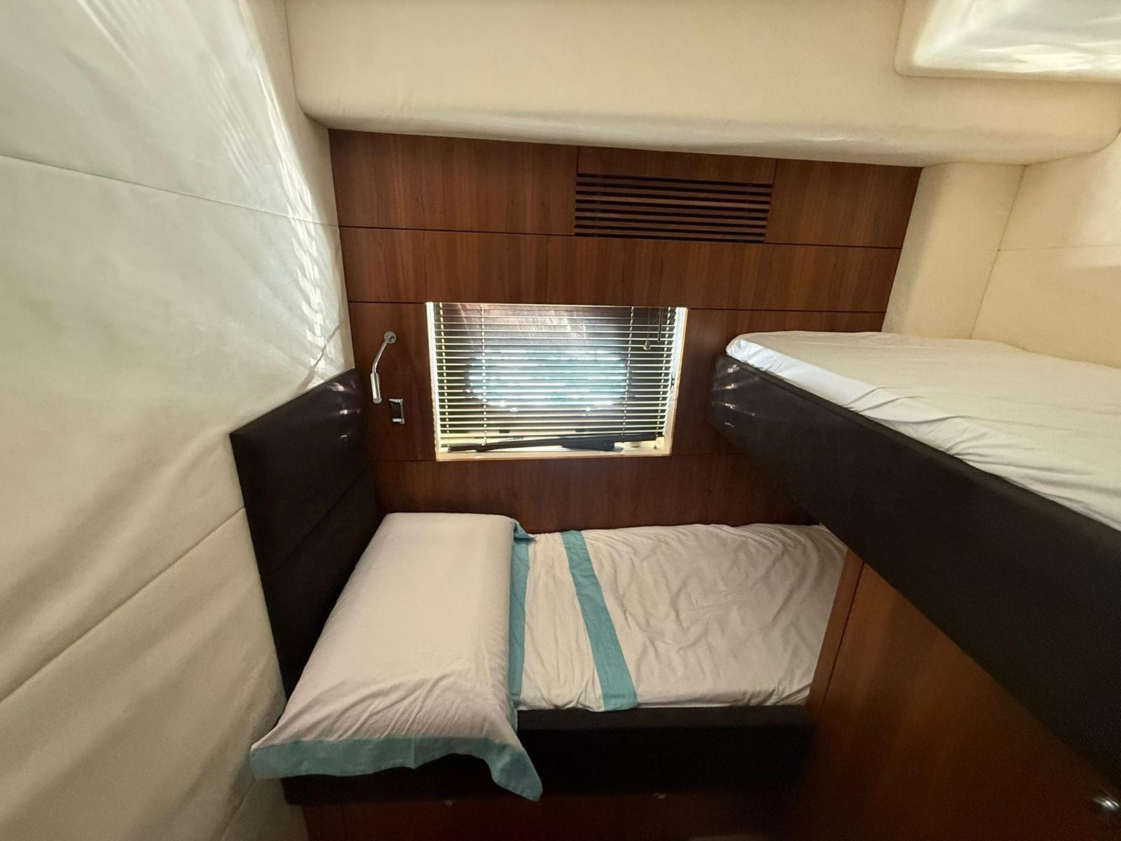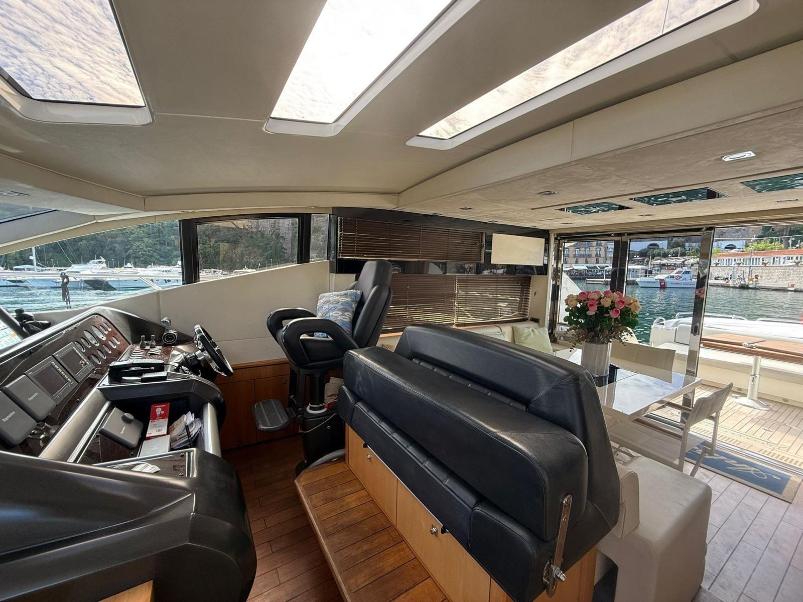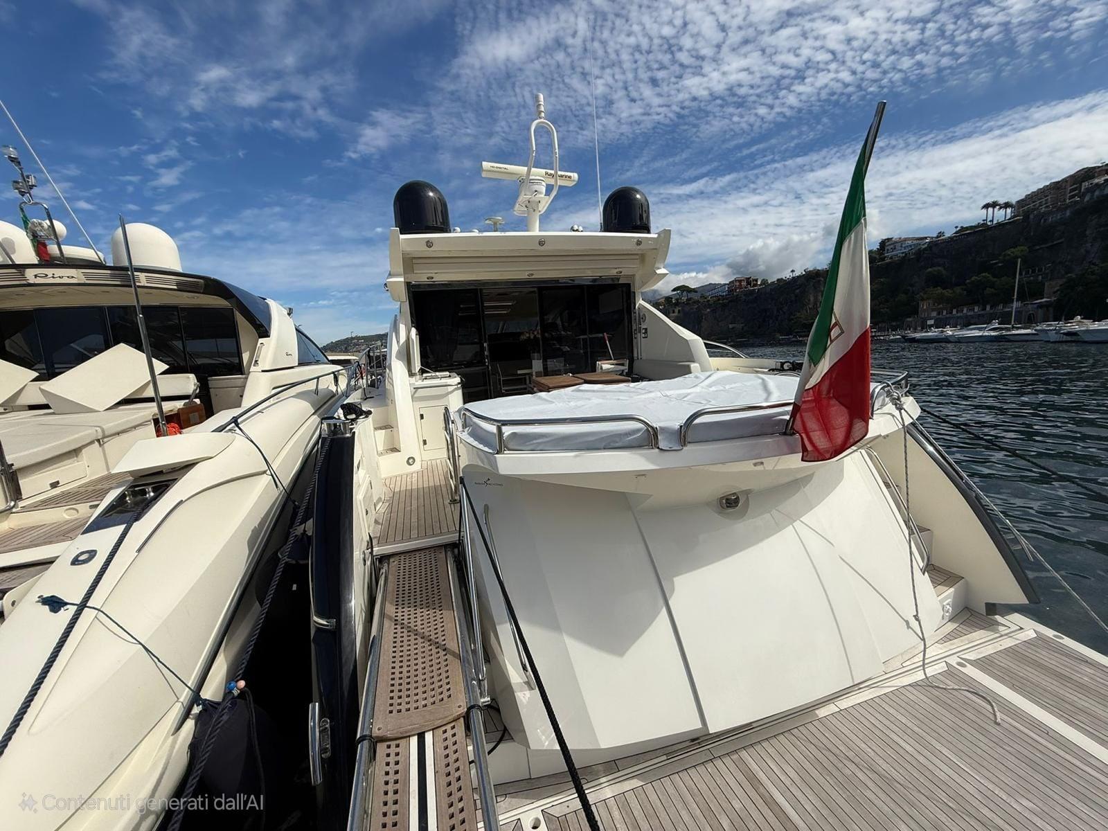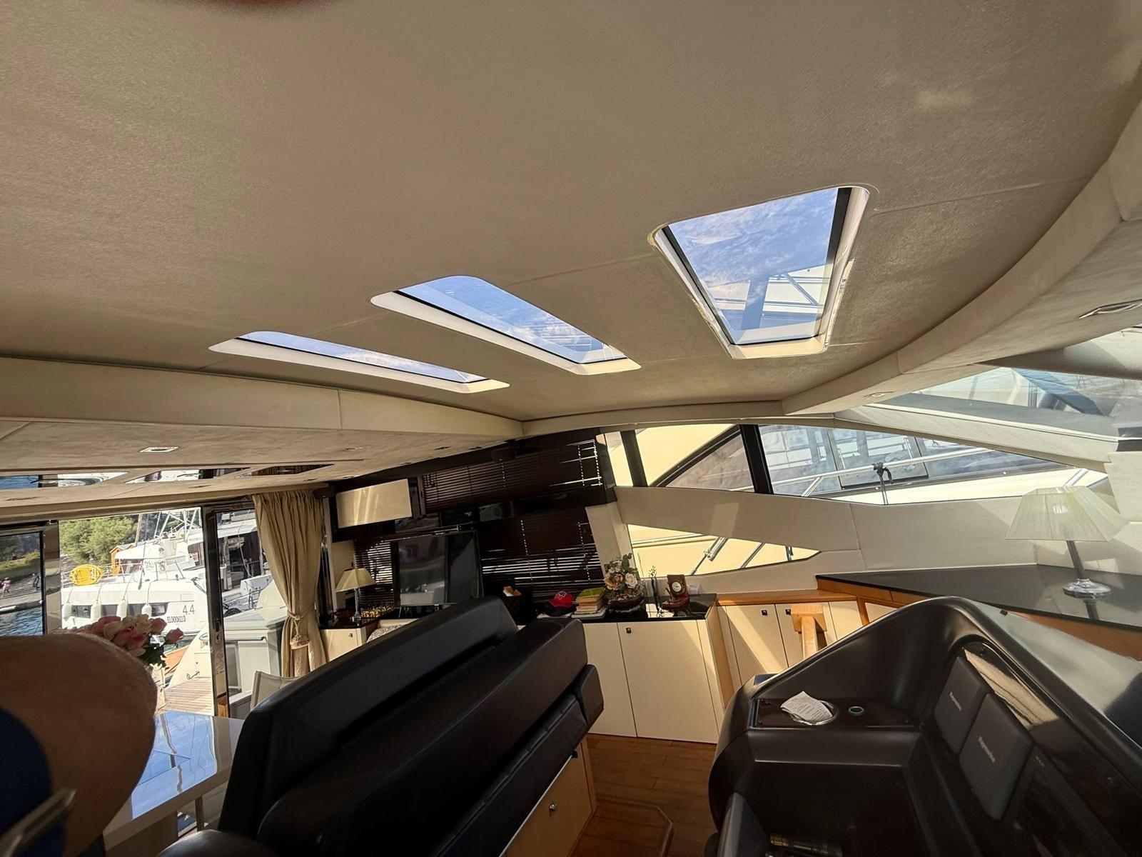 Engine Alarm, Bilge Alarm, Alternator, Water pressure pump, Teak Side Decks, Deck Shower, Hydraulic Flaps, Tender Garage, Hard top, Fire Extinguishing System, Flaps Indicators, Anchor Chain Washdown, Washbasin in the cockpit, Courtesy Lights, Underwater lights, Gangway, Platform, Automatic Bilge Pump, Manual Bilge Pump, Teak deck, Entry door, Teak Cockpit, Shorepower connector, Water harbor connector system, Electric Windlass, swimming ladder, cockpit table, Living Room Foldable Table, Tender, Horn, 2 Stern Winches, Bow Winches.