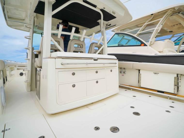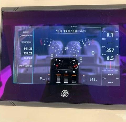 AIS ((Identificazione Raymarine), transceiver 650), Rudder angle indicator, Radar Antenna, Electronic engine control, On-Board Computer, DSC vhf, Joystick, Plotter with GPS antenna, Co-pilot seat, Sonar.