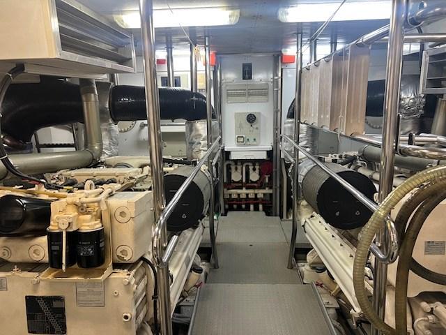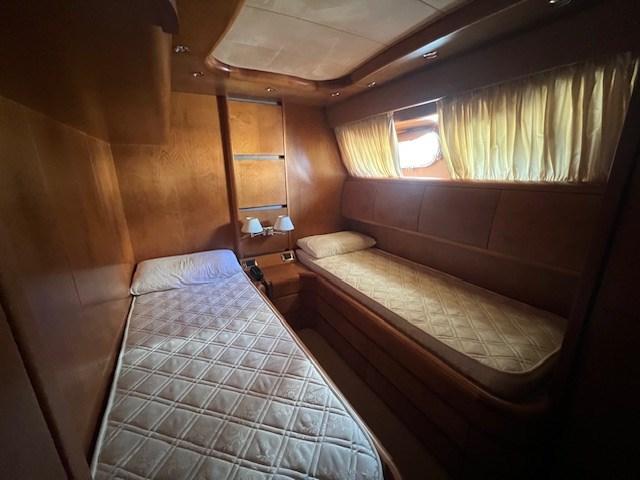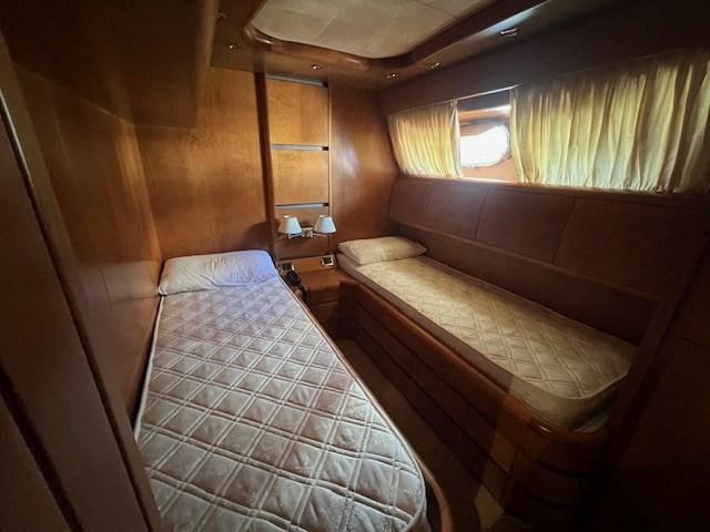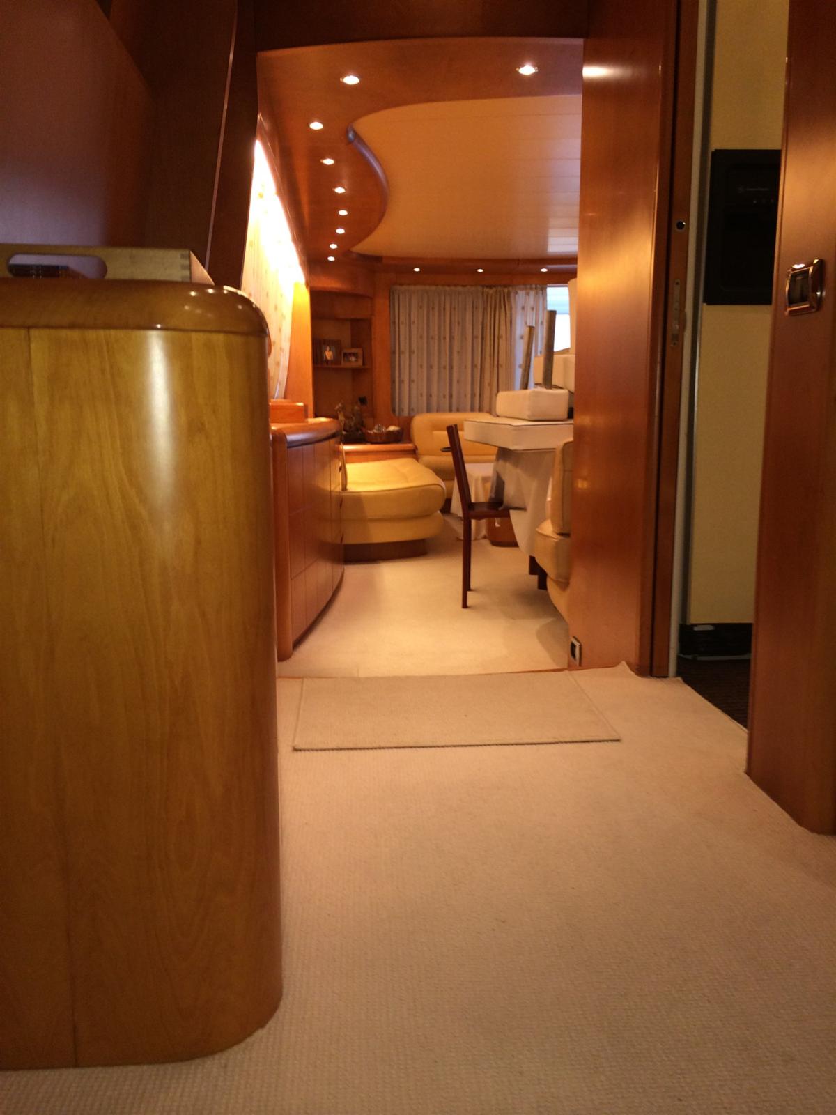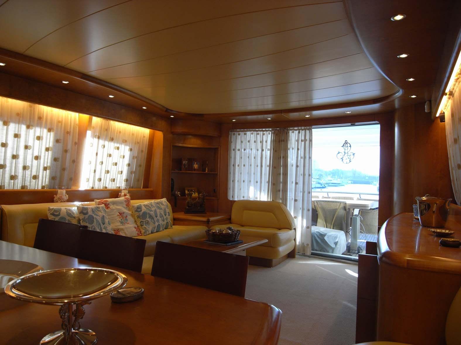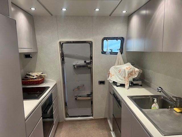 Fume/Gas Detector, Engine Alarm, Bilge Alarm, Alternator, Water pressure pump, Teak Side Decks, Shore power cable, Guard rail, Deck Shower, Twin Steering, Directional Spotlight, Hydraulic Flaps, Crane, Fire Extinguishing System, Anchor Chain Washdown, Courtesy Lights, Gangway, Platform, Automatic Bilge Pump, Manual Bilge Pump, Teak deck, Entry door, Side door, Teak Cockpit, Voltage Rectifier, Rollbar, Electric Windlass, Gang Board, swimming ladder, Saddles for tender, cockpit table, guard rails with gates, Horn, Stern Winches, Bow Winches.
