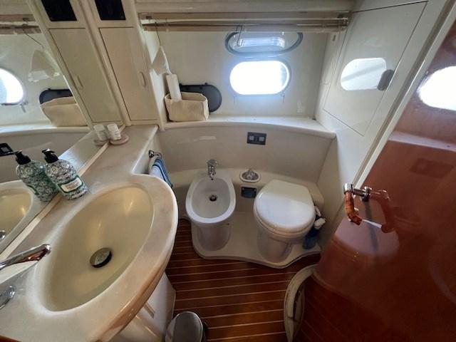 Engine Alarm, Bilge Alarm, Water pressure pump, Teak Side Decks, Deck Shower, Electric Flaps, Washbasin in the cockpit, Courtesy Lights, Underwater lights, Platform, Automatic Bilge Pump, Entry door, Side door, Teak Cockpit, Shorepower connector, Rollbar, Electric Windlass, Gang Board, cockpit table, Tender, guard rails with gates, Horn, Stern Winches.