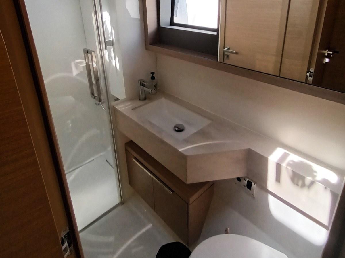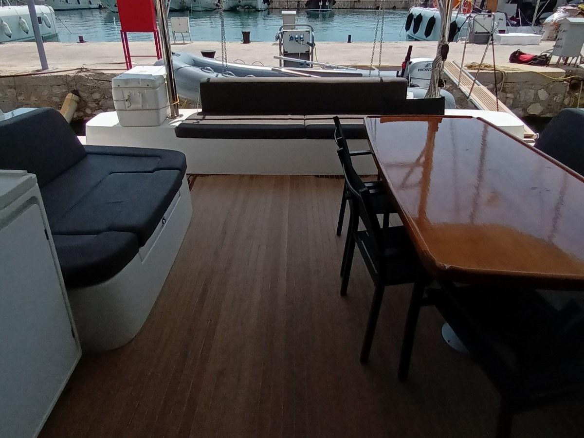 Engine Alarm, Bilge Alarm, Alternator, 2 Anchor (45 kg con 90 m di catena + ancora con 20 m di catena), Water pressure pump, Deck Shower, Tender Crane, Washbasin in the cockpit, Battery Monitor, 2 Solar panels (305W), Gangway (idraulica 3m), Automatic Bilge Pump, Entry door, Teak Cockpit, Shorepower connector, Water harbor connector system, Electric Windlass, Strand rigging, swimming ladder, cockpit table, Tender, Windex.