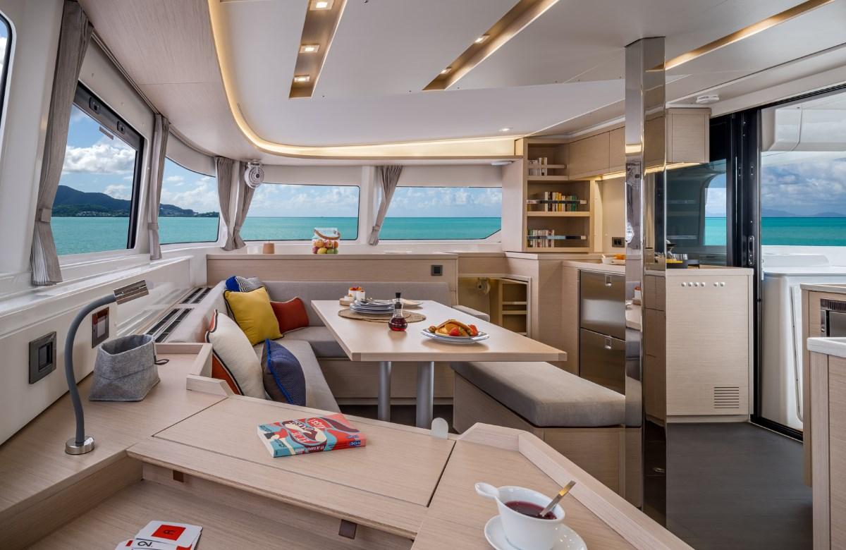 The VPLP design studio has been able to renew the balance between the various living areas. The Lagoon 46 combines modular sundecks at the stern and bow, a complete galley at the stern, practical and safe access to the sea, while retaining large volumes in the saloon in which Nauta Design can find full expression.