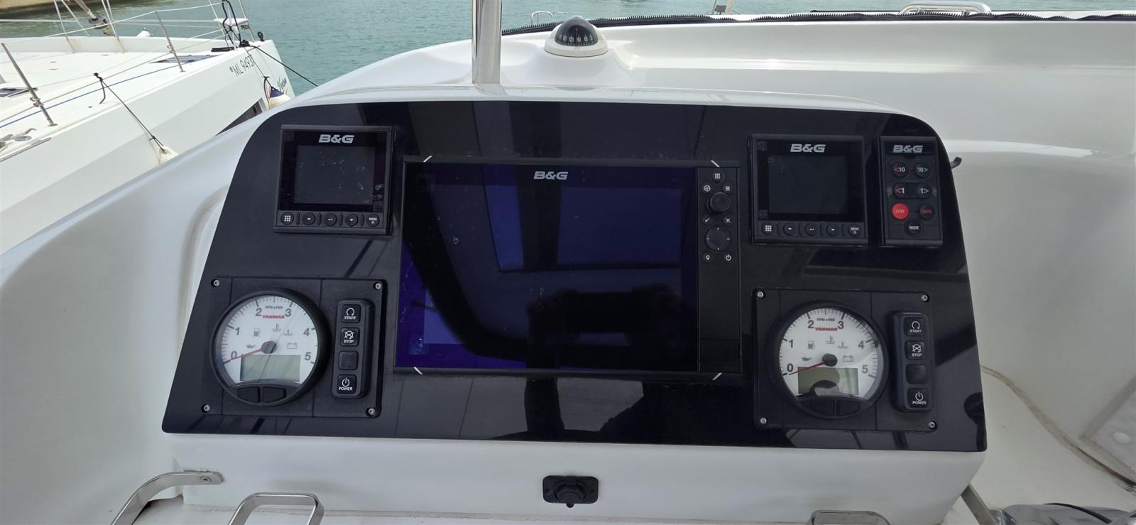 AIS (IN/OUT 2024), Chain counter (con telecomando), Display (DOMOTIC DISPLAY), Depth Sounder (B&G), Log (B&G), Plotter with GPS antenna (B&G 12”), VHF Radio (B&G 2024), Wind Station (B&G).