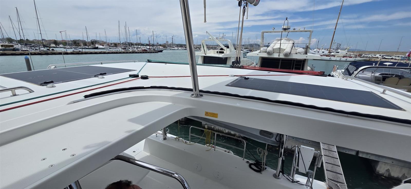 Engine Alarm, Bilge Alarm, Water pressure pump, Batteries (Agosto 2025), Deck Shower, Tender Crane, 2 Underwater lights, 3 Solar panels, Gangway (in carbonio), Automatic Bilge Pump, Entry door, Shorepower connector, Water harbor connector system, Electric Windlass (REMOTE), Strand rigging, swimming ladder, cockpit table, Tender, 2 Winch.