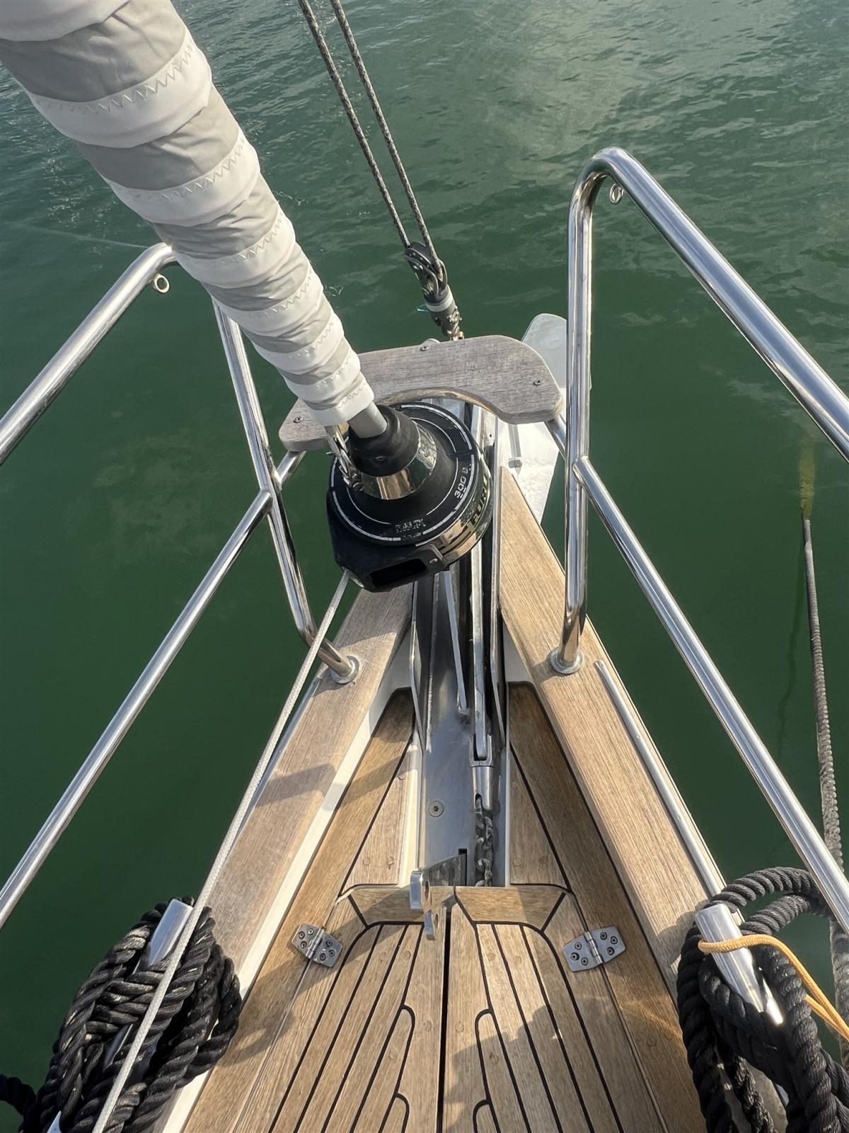 Batteries (AGM 2025), 2 Solar panels (2X100W SOLBIAN - VICRON SMART CHARGER 2024), Automatic Bilge Pump, Manual Bilge Pump, Teak deck, Teak Cockpit, Shorepower connector, Electric Windlass, Strand rigging, swimming ladder, Outboard Engine Support Bracket, cockpit table, 4 Winch Electric (ANDERSEN 2X58 + 2X46 INOX), Windex.