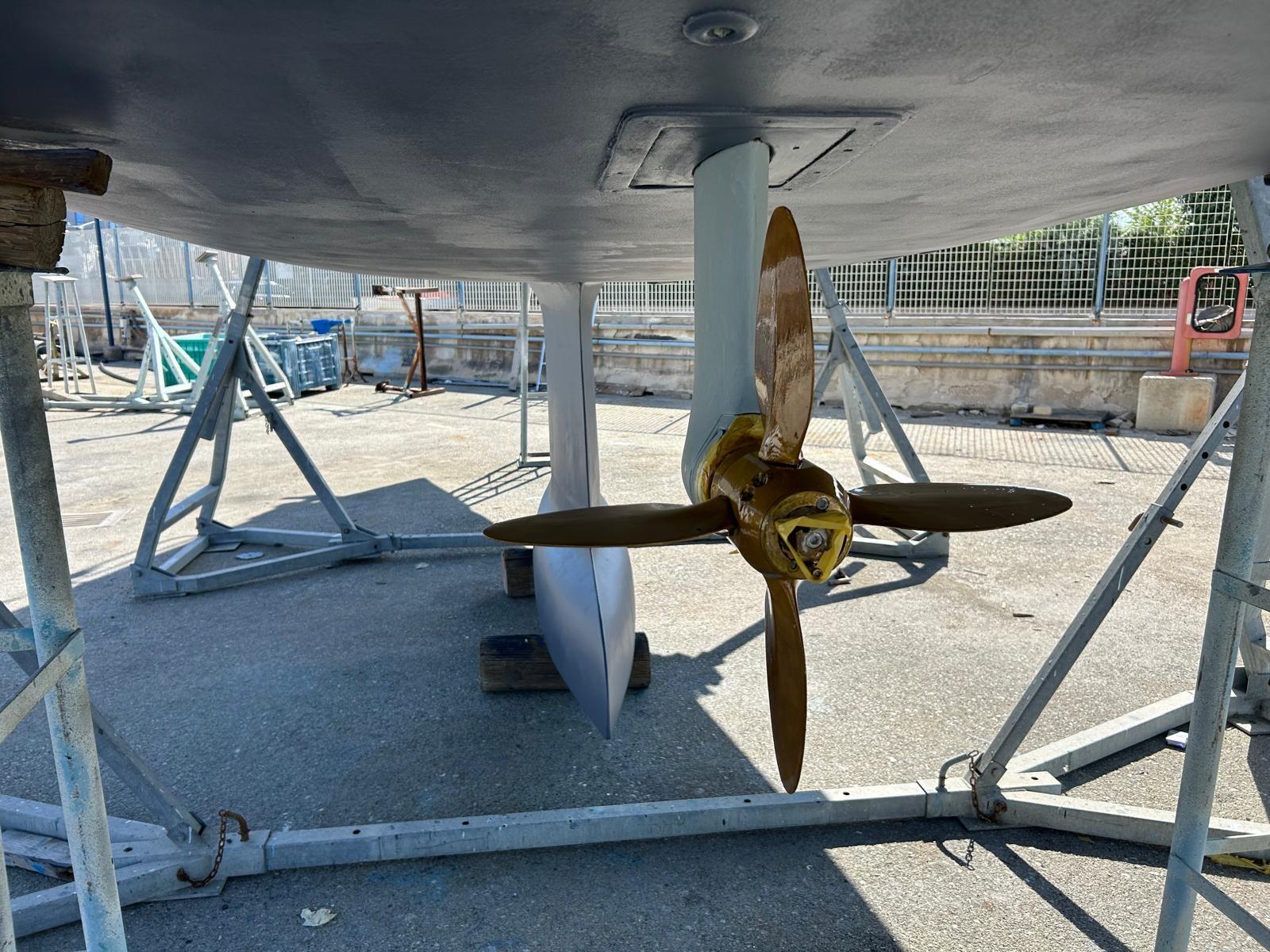 -living work brought back to gelcoat and renewal of the epoxy primer with a complete cycle International 5 coats for hull and 5 coats for keel and bulb (2021);