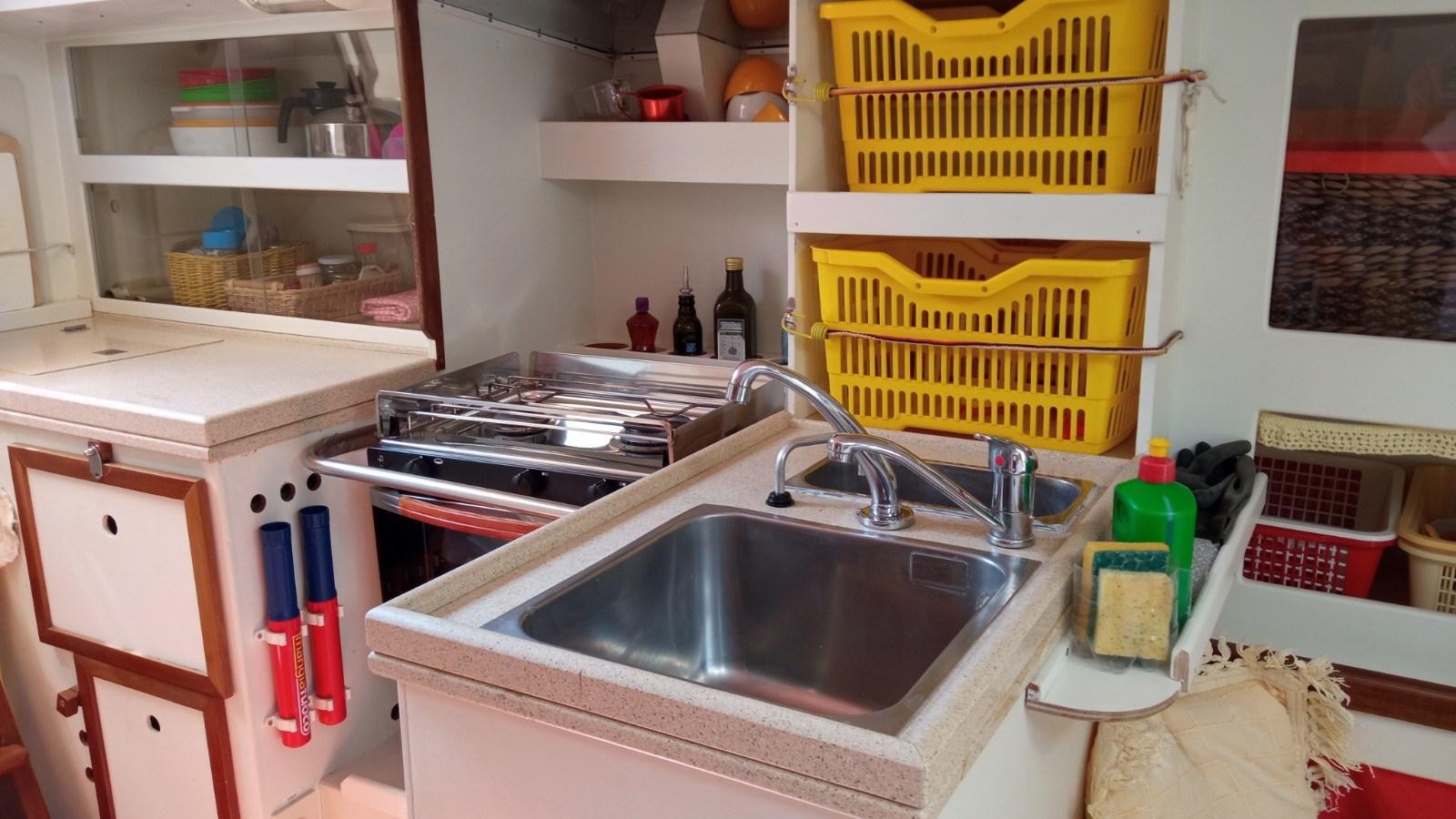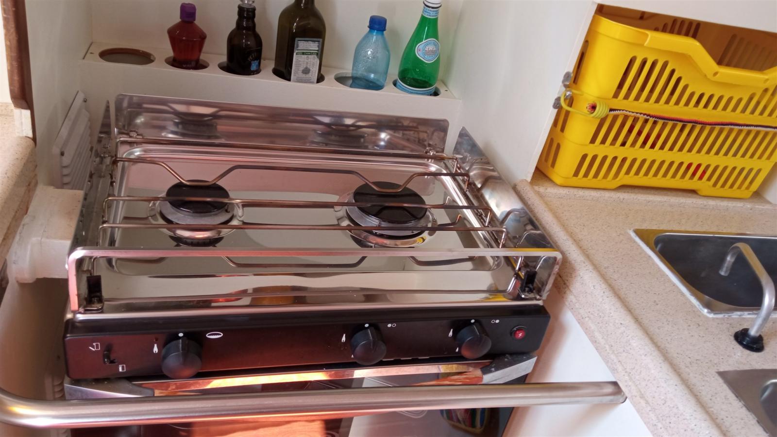 Galley (A GAS ENO BASCULANTE CON 2 FUOCHI), Refrigerator (A POZZETTO).
