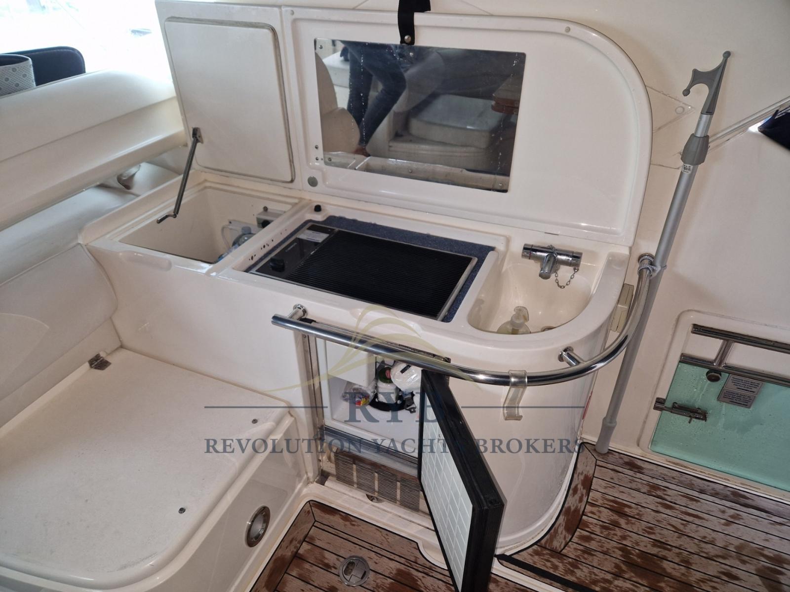 Water pressure pump, Deck Shower, Hydraulic Flaps (N°2), Washbasin in the cockpit, Courtesy Lights, Gangway (IDRAULICA A SCOMPARSA), Platform, Automatic Bilge Pump, Teak Cockpit, Shorepower connector, Voltage Rectifier, Rollbar, Electric Windlass, swimming ladder, cockpit table.