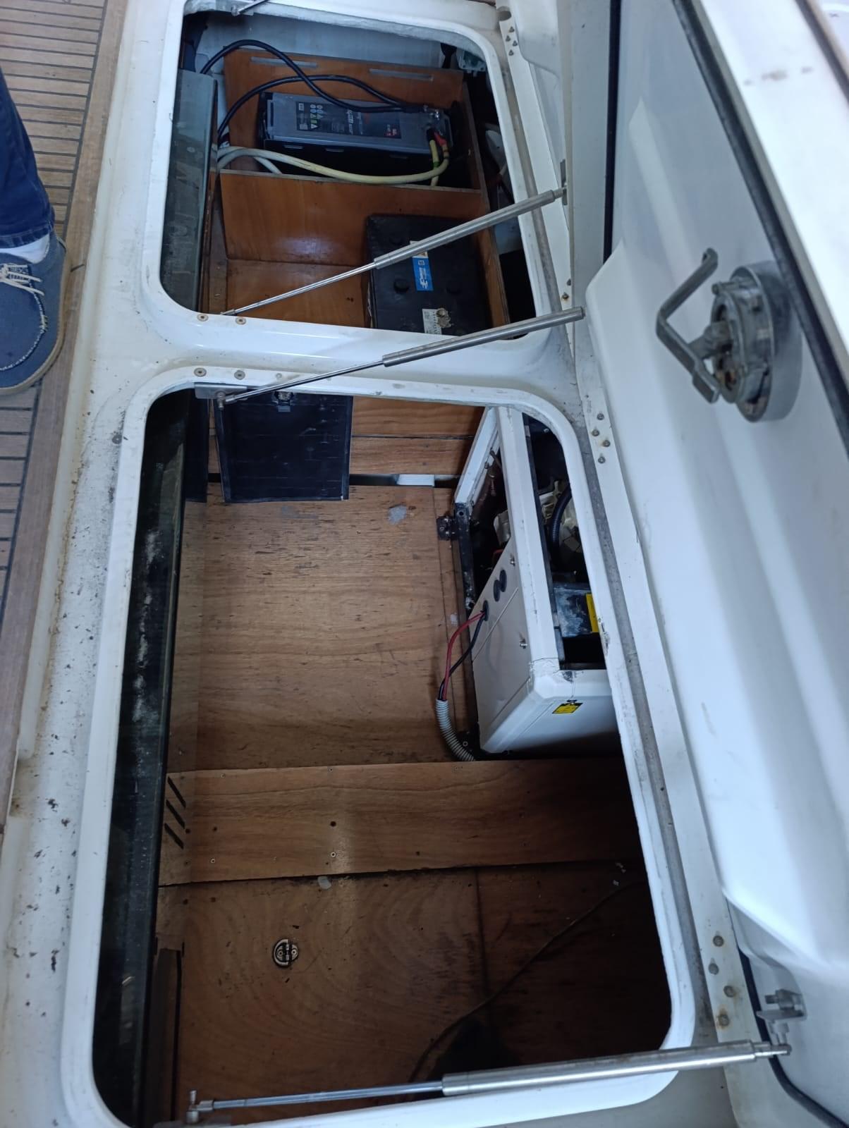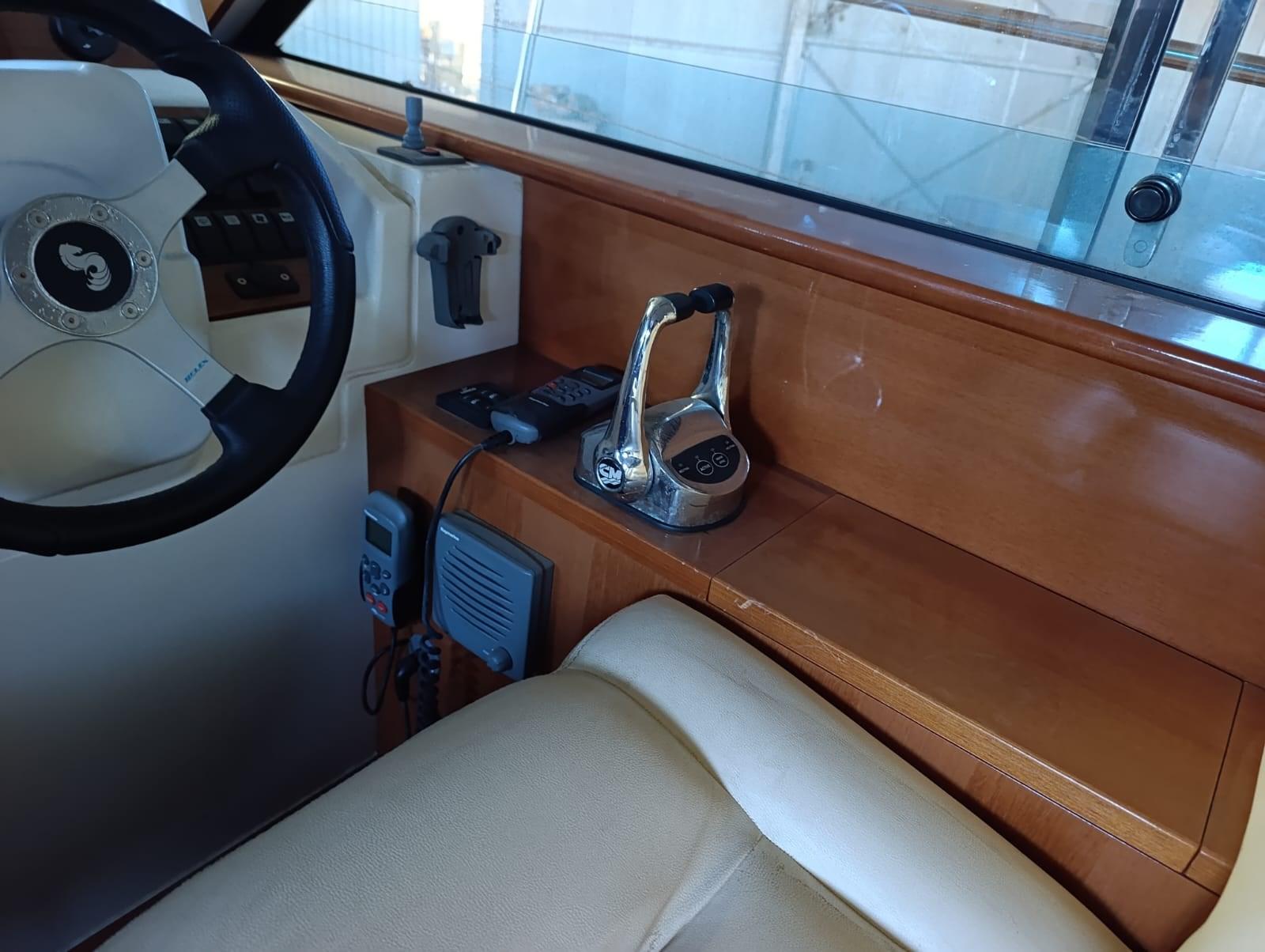 Engine Alarm, Water pressure pump, Batteries (nuove), Guard rail (teak), Deck Shower (CALDA E FREDDA), Twin Steering, 2 Hydraulic Flaps, Flaps Indicators, Gangway, Platform (TEAK), Automatic Bilge Pump, Entry door, Teak Cockpit, Voltage Rectifier, Electric Windlass, swimming ladder, Horn.