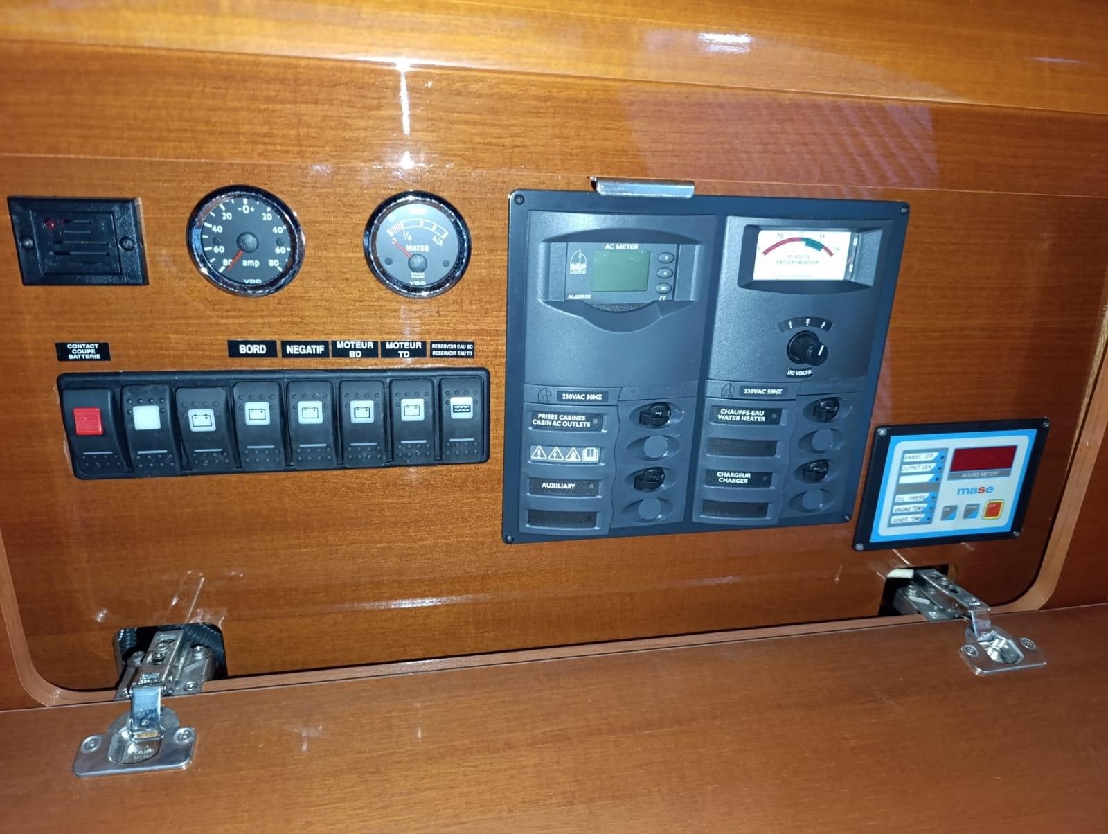 Rudder angle indicator, Electronic engine control (manette elettroniche), Display, VHF Radio (Raymarine 240E).