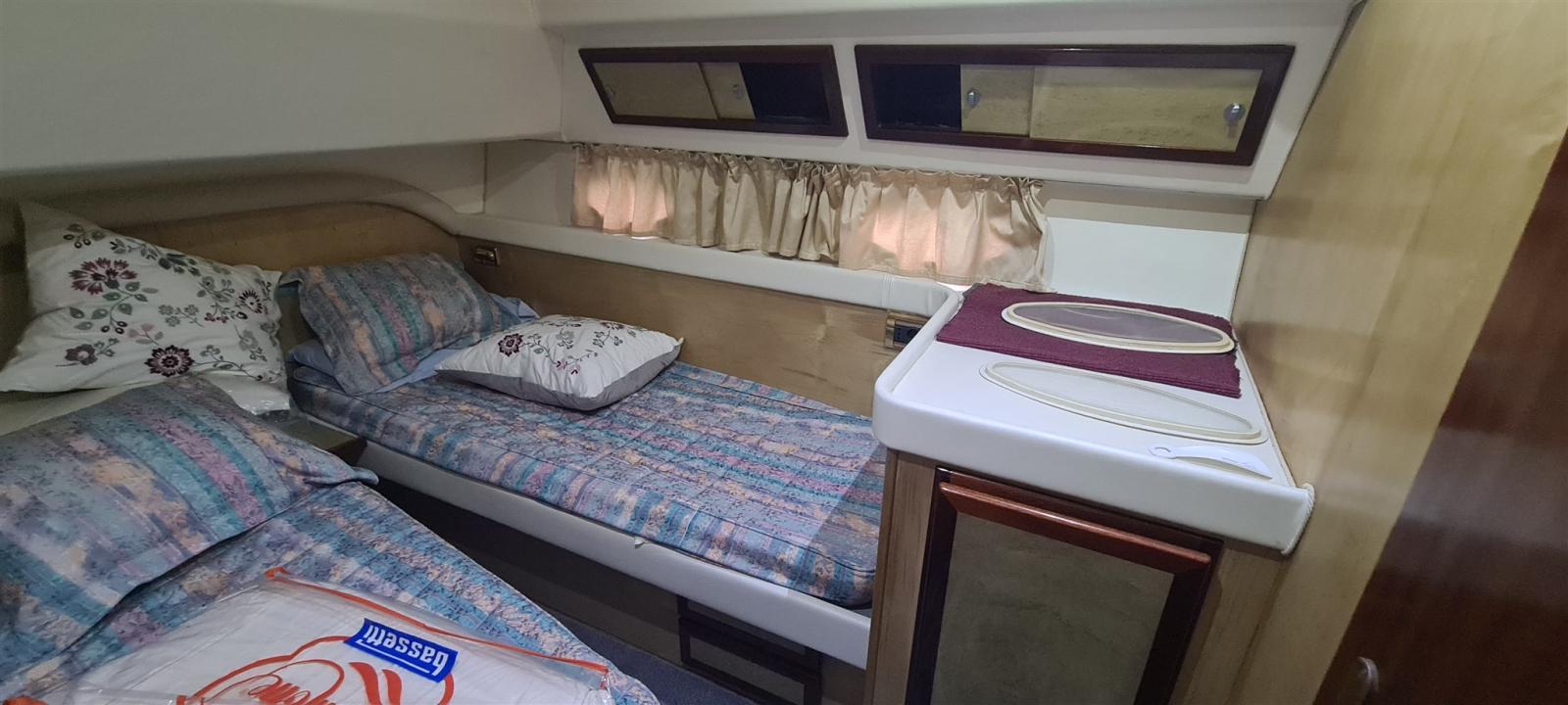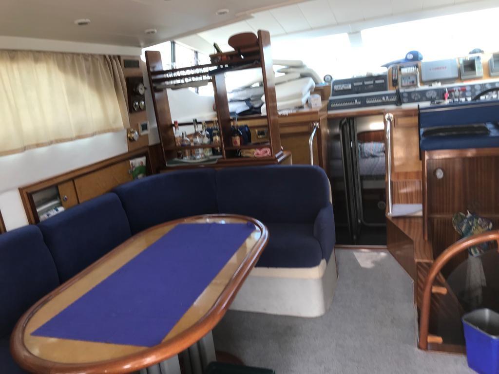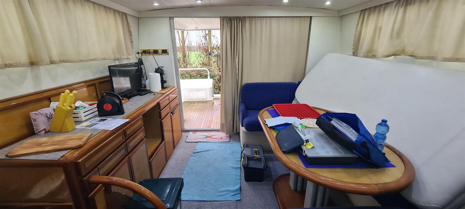 Fume/Gas Detector, Engine Alarm, Bilge Alarm, Water pressure pump (nuova 2018), 8 Batteries (2 motori - 6 servizi), Deck Shower, Twin Steering, Directional Spotlight, Hydraulic Flaps, Davits for tender on fly, Flaps Indicators, Courtesy Lights, Underwater lights, Gangway (idraulica revisionata), Platform, Automatic Bilge Pump, Manual Bilge Pump, Entry door, Side door, Teak Cockpit, Shorepower connector, Water harbor connector system, Electric Windlass, swimming ladder, Saddles for tender, Living Room Foldable Table, Horn.