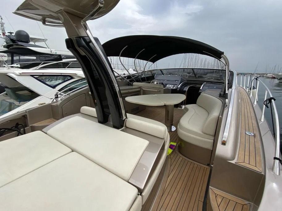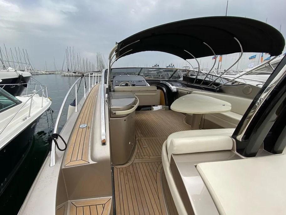 Engine Alarm, Bilge Alarm, Alternator, Water pressure pump, Batteries (NUOVE), Teak Side Decks, Deck Shower, Tender Garage, Washbasin in the cockpit, Gangway (IDRAULICA), Manual Bilge Pump, Teak deck, Teak Cockpit, Shorepower connector, Water harbor connector system, Electric Windlass, swimming ladder, cockpit table, Tender (IDROGETTO AVON for RIVA).