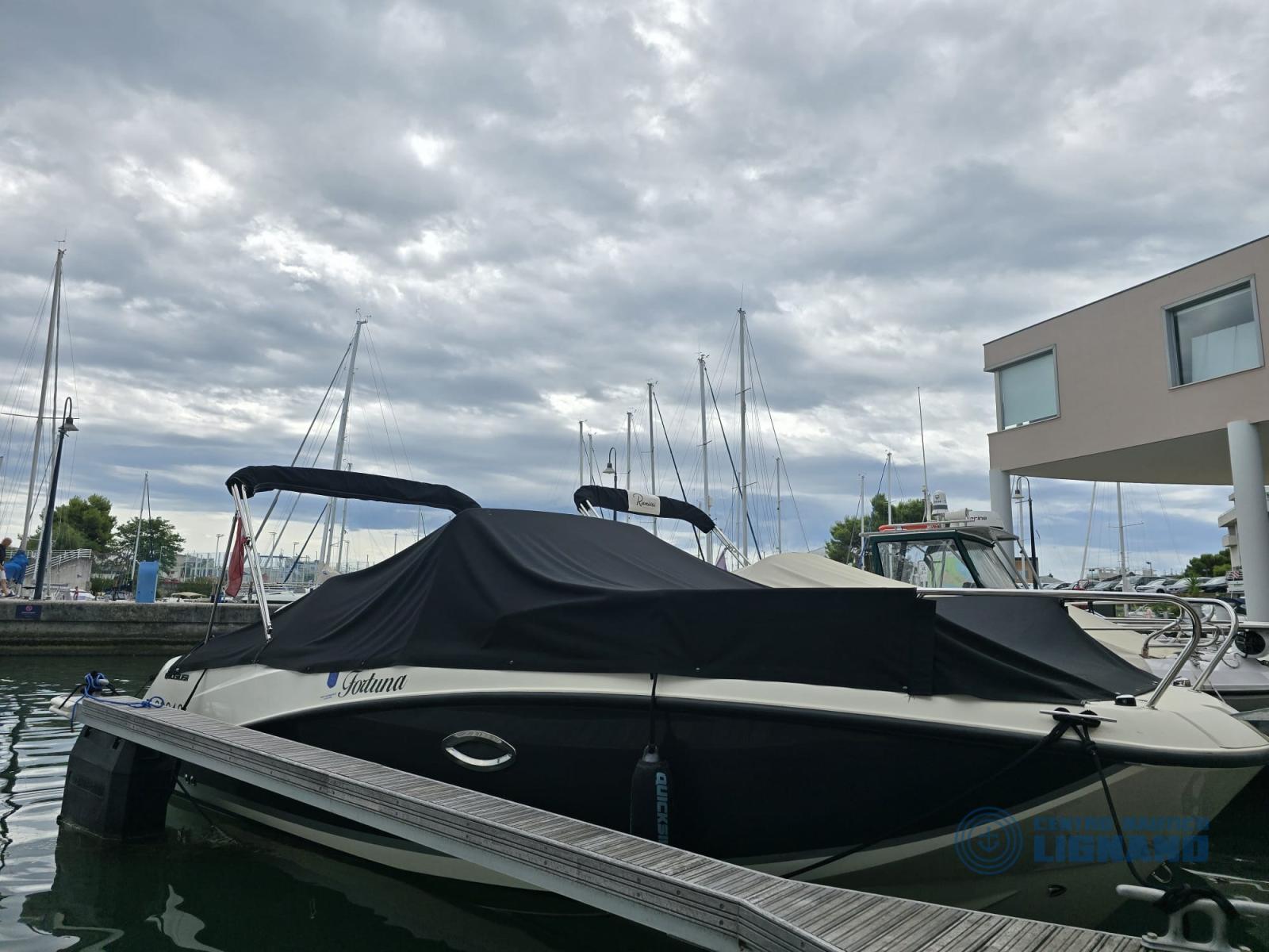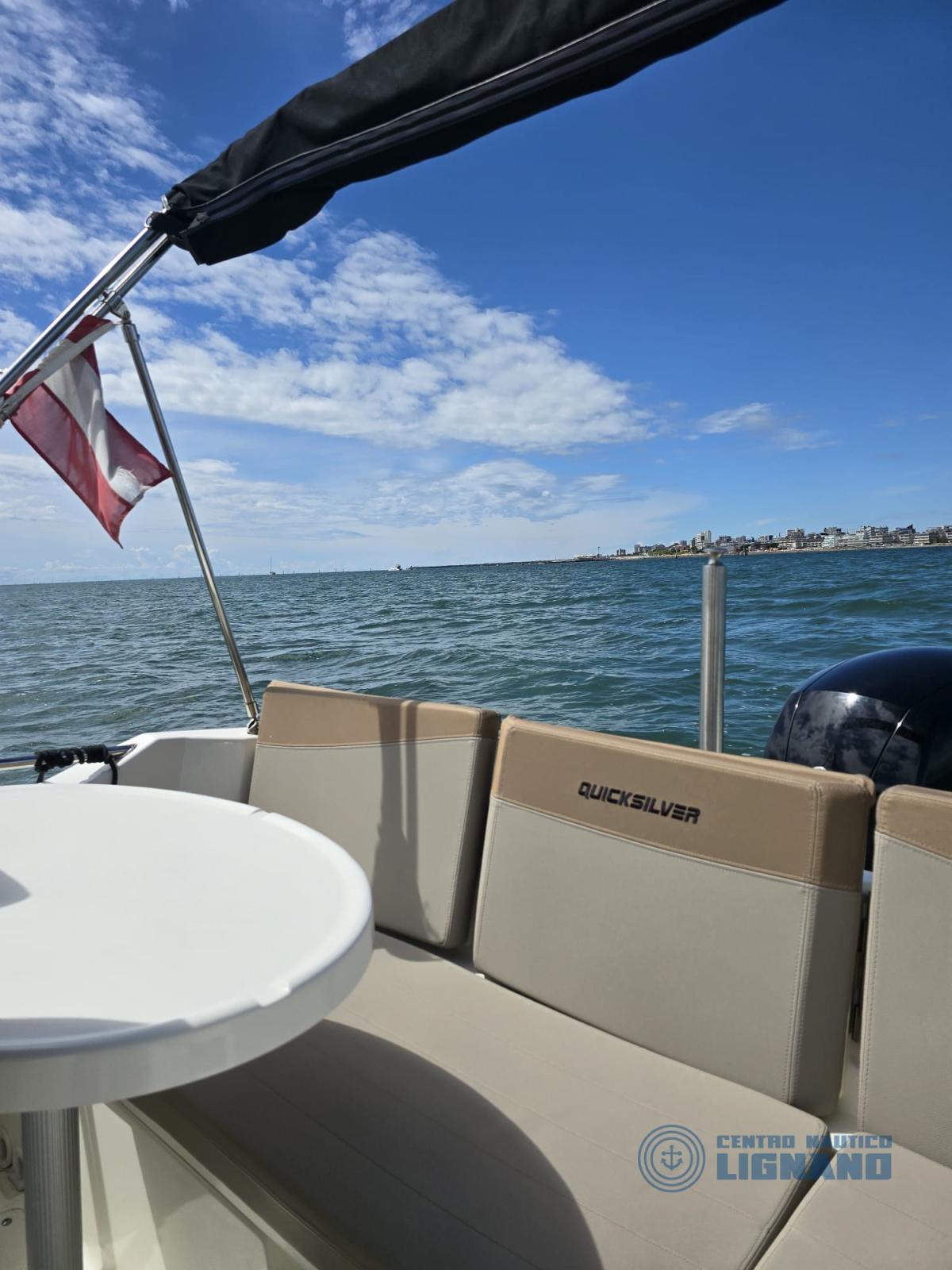 2022 Quicksilver 675 Activ boat with Mercury F150 EXLPT EFI engine complete with awning, Fusion stereo with 2 speakers, cockpit shower, cockpit table, electric bow winch, water ski pole, console and seat cover, bow platform extension, dark gray colored hull, Garmin Eco 6" GPA, anchor, 30 m chain. Complete and well maintained boat. Very attractive price. In the agency.