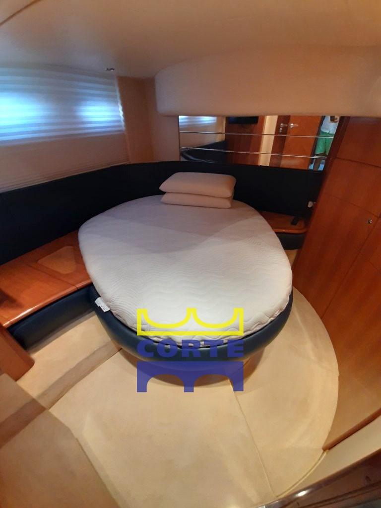 Engine Alarm, Bilge Alarm, Water pressure pump, Battery charger (nuovo con dislpay controllo remoto), Deck Shower, Twin Steering, Directional Spotlight, Hydraulic Flaps, Tender Crane (passerella), Underwater lights (sotto piattaforma di poppa), Gangway (idraulica), Platform (poppa in teak), Automatic Bilge Pump, Entry door, Teak Cockpit, Shorepower connector, Rollbar, Electric Windlass, swimming ladder, Horn, Stern Winches, Bow Winches.