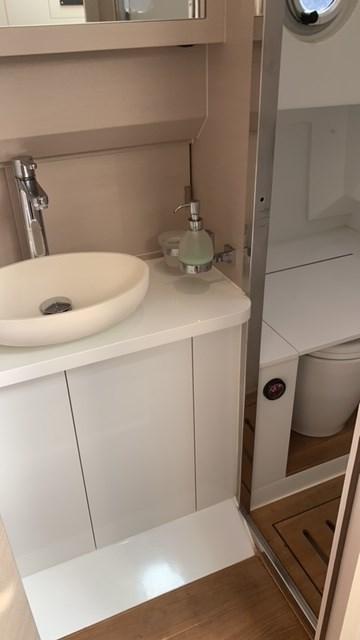 Shore power cable, Deck Shower, Underwater lights, Gangway, Manual Bilge Pump, Electric Windlass, swimming ladder, cockpit table.