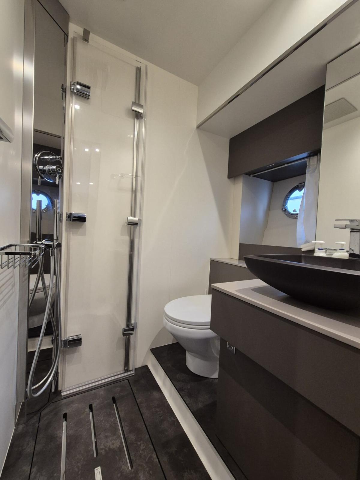2 Air Conditioning (with heat pump, 16.000 BTU cabins and 8.000 BTU cockpit), BBQ/Grill, Waste Water Tank Meter, Heater (25 L), Black Water Tank.