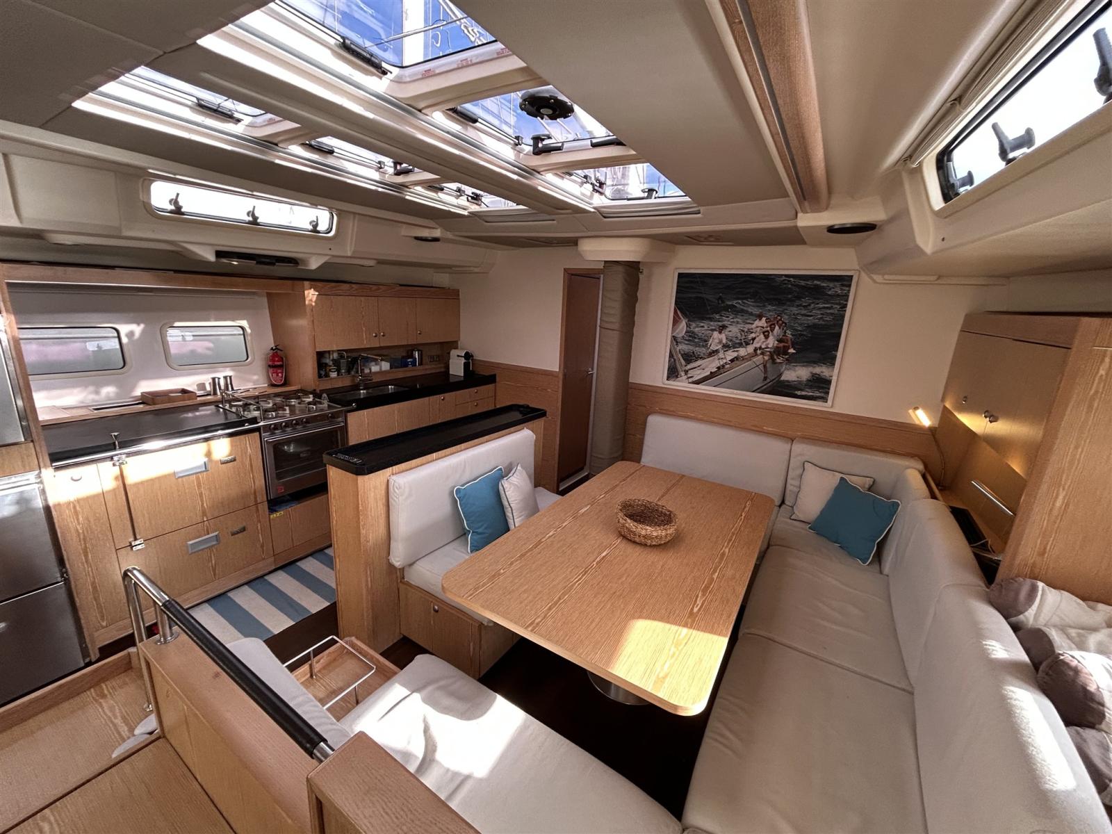 The Hanse 575 is a prestigious 17.15 meter (57 ft) cruising sailing yacht designed by Judel/Vrolijk & Co, known for its modern lines, excellent performance and great ease of handling (standard self-tacking jib). It offers large living spaces with a 4-cab layout, 150 hp Volvo Penta engine, and a generous 5.20-meter beam that guarantees stability and comfort when sailing.