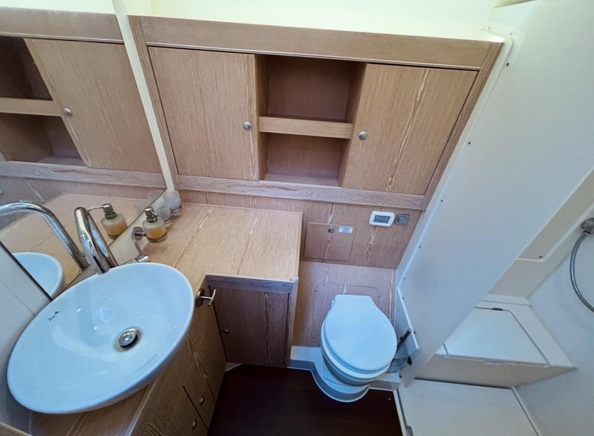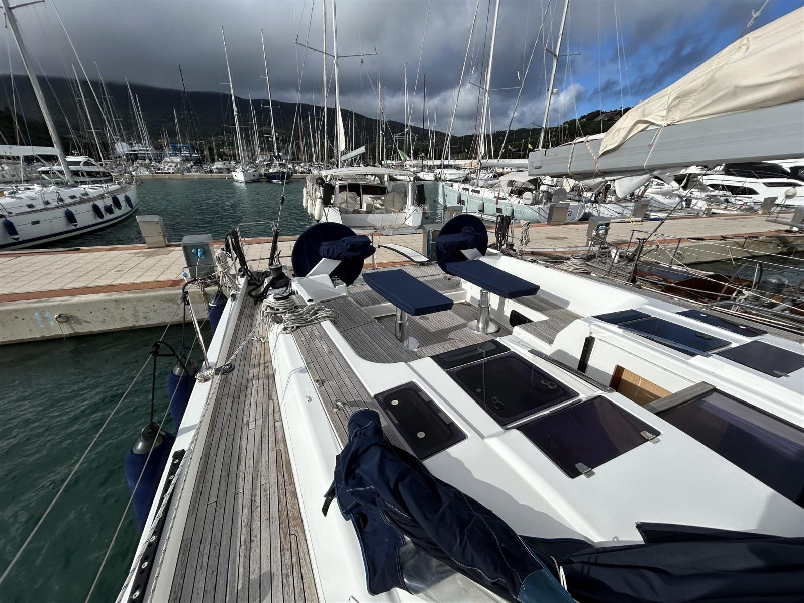 Engine Alarm, Water pressure pump, 3 Batteries (1x90 Ah + 2x165 Ah AGM), Teak Side Decks, Deck Shower, Twin Steering, Tender Garage, 8 Fenders, Gangway, Platform, 2 Automatic Bilge Pump, Manual Bilge Pump, Entry door, Teak Cockpit, Shorepower connector, Voltage Rectifier, Electric Windlass, Strand rigging, swimming ladder, Tender, Teak Deckhouse, 4 Winch (2 primari 65 AST e 2 secondari 55 AST), Bow Winches, Windex.