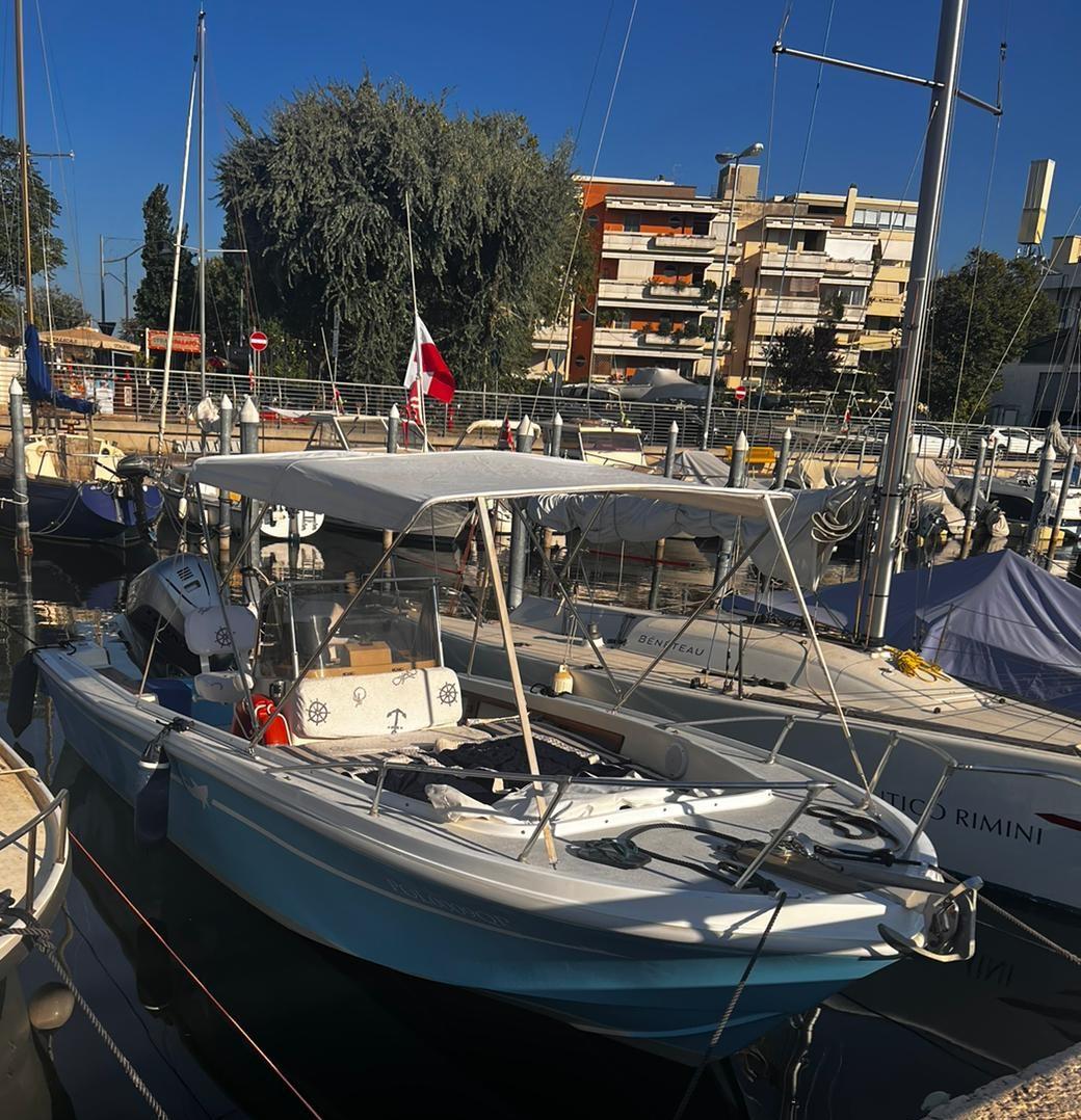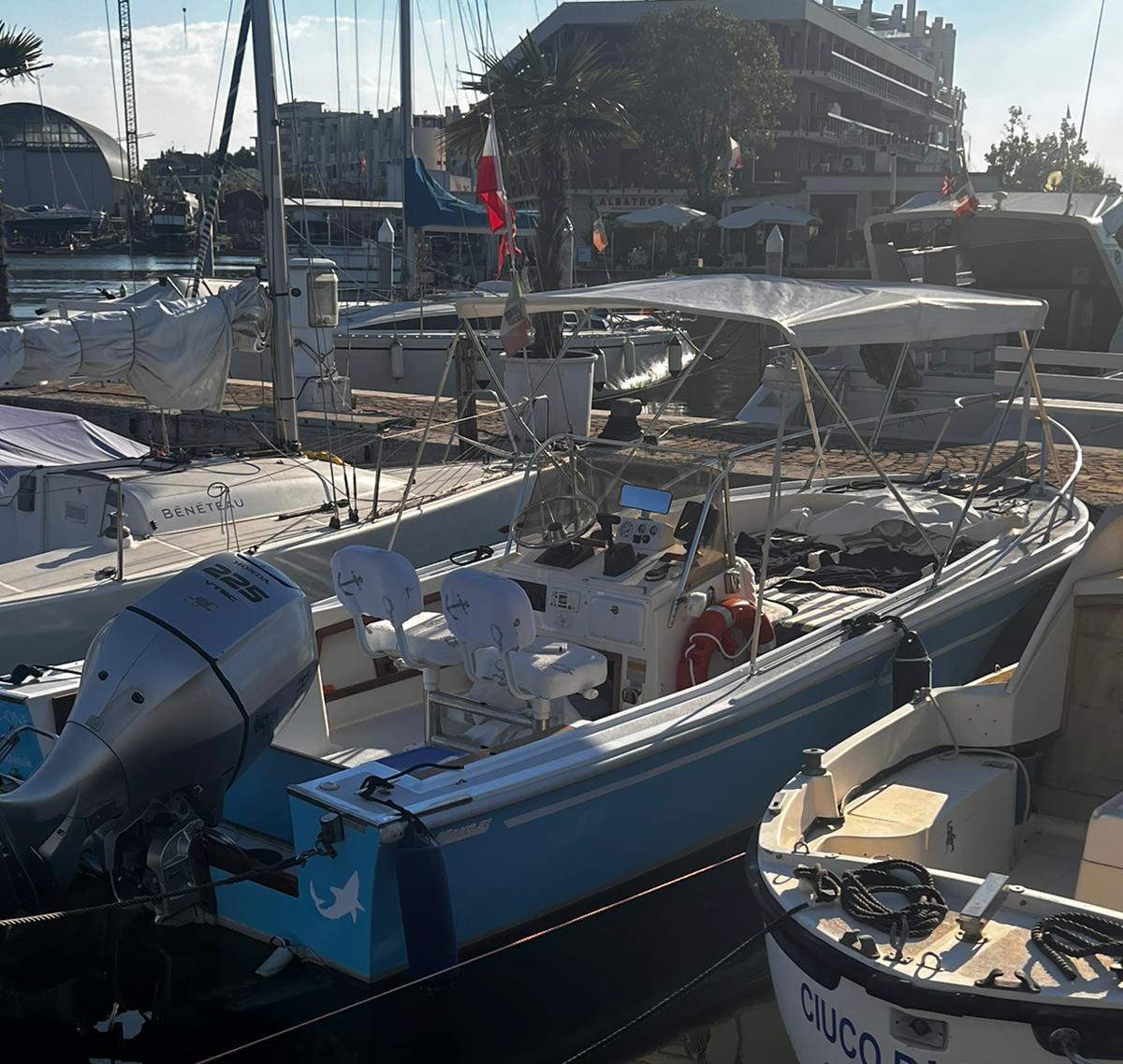 hull brought to zero and anti-osmosis treatment, primer and antifouling - anti-slip in the footfall - repainting of wooden parts - grouting and repainting of the gunwale - replacement of the barrel - new upholstery - new awning - wrapping to the hull