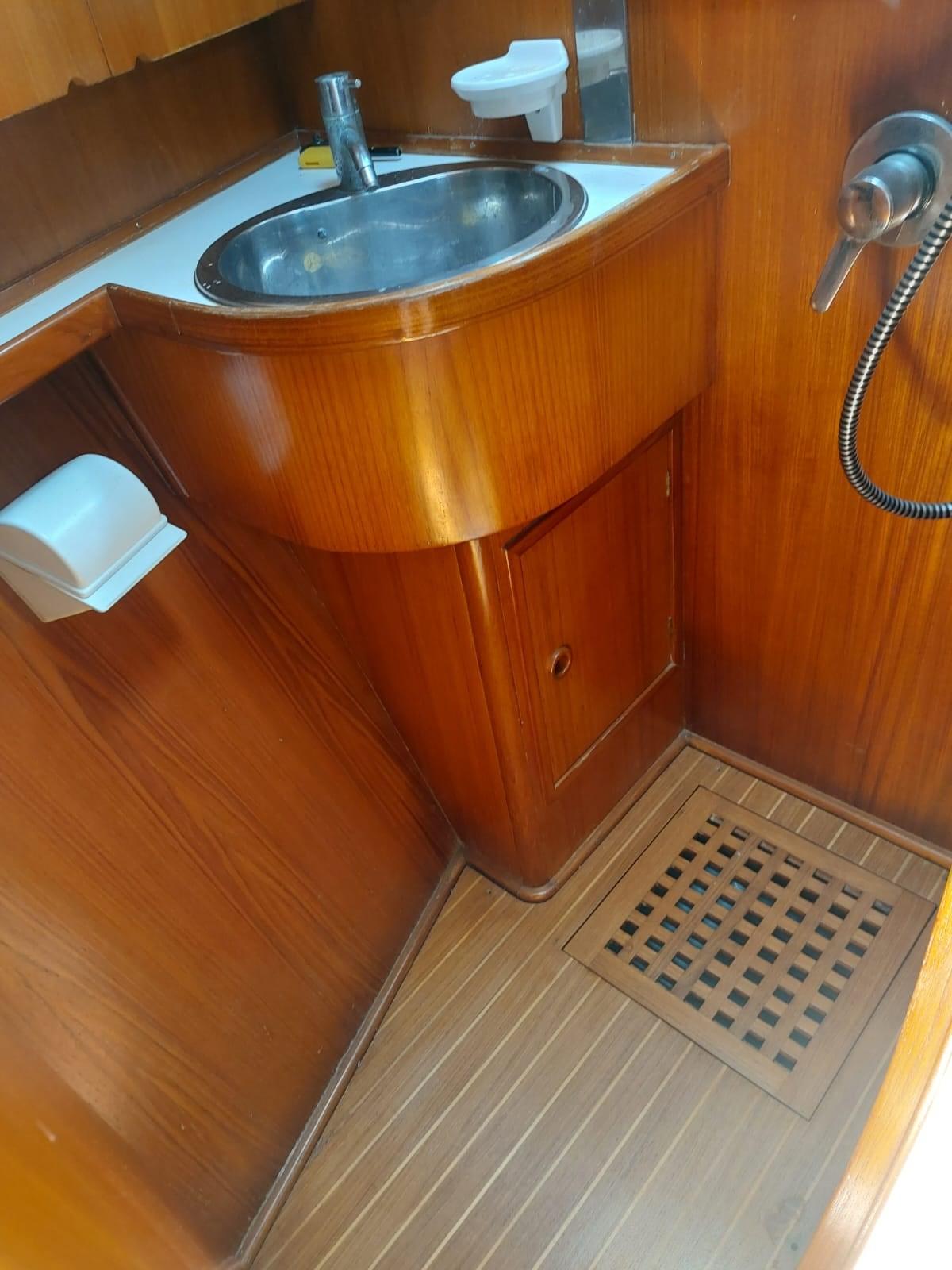 GENERAL REFIT 2021/2023 Dismasting and overhaul with pulley replacement, electrical system - replacement of all rigging and running rigging - overhaul of Onan 7.5Kw generator (exchanger landed and all rubber hoses replaced) - Lofrans Falkon windlass total overhaul - rudder blade disassembly for new resin coating (Franchini) - rudder overhaul - Bamar jib roller overhaul - overhaul and sail washing (Zattoni sailmaker) overhaul and chrome plating Winches Antal - overhaul of the Nemo backstay tensioner with replacement of 80% internal components - overhaul of pumps (air conditioning, high and low pressure watermaker) installed galvanic isolator - installed gas safety valve and electric control - propeller balancing - complete refit of engine room (pipes, anti-noise, bilge) refit of engine room electrical system - complete refit bonding wiring (grounding of sea sockets) - installed surge protector for VHF antenna - installed filter fresh water on kitchen tap - washing fresh water tanks (1000l) - refrigerator and freezer overhaul, replacement of freezer coil, pipes and compressor gas refill. - overhaul of the starter motor, replacement of electromagnet - painting of lockers, bilges, beams - cleaning and polishing of the floor - most of the electrical systems renewed and documented in digital format - painting of internal frames and overhaul of Lewmar portholes - new anchor Rocna + chain (10mm) - new batteries (180ah, 240ah) new rectangular boiler 20l - new VHF DSC B&G V60 with GPS and integrated AIS with the possibility of wireless handset - new FUSION stereo radio (USB) sectorization of rooms, VHF receiver, 6 new loudspeakers - replacement of seacocks - hull brought to zero + anti-osmosis treatment