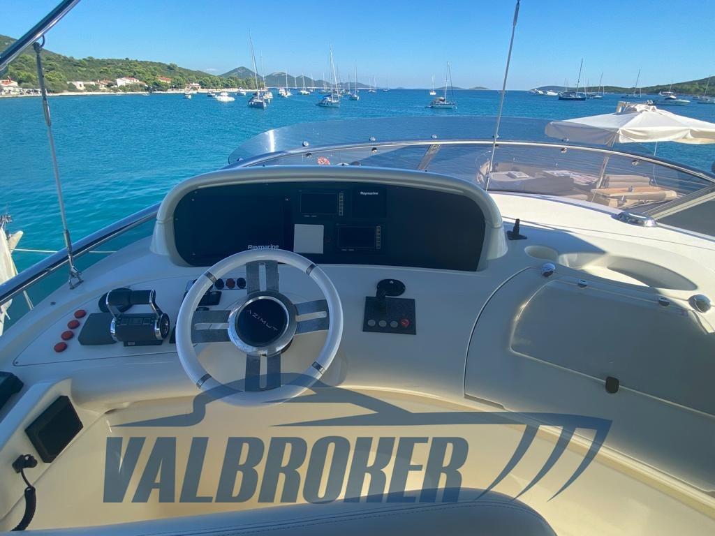 Water pressure pump, 12 Batteries (Nuove), Teak Side Decks, Battery charger (Mastervolt 24V 110 aH), Directional Spotlight, Hydraulic Flaps, Jet-Ski Crane (Sul fly), Courtesy Lights, Underwater lights, Gangway (A scomparsa), Platform (Teak), Entry door, Teak Cockpit, cockpit table, Bow Winches.