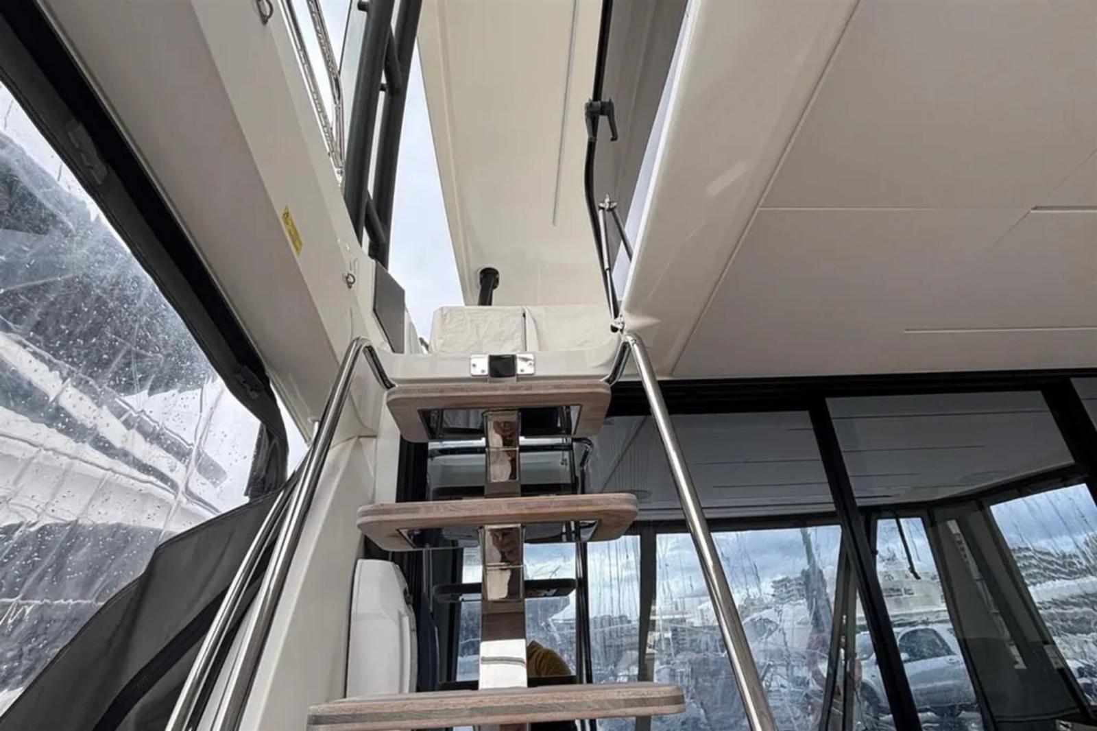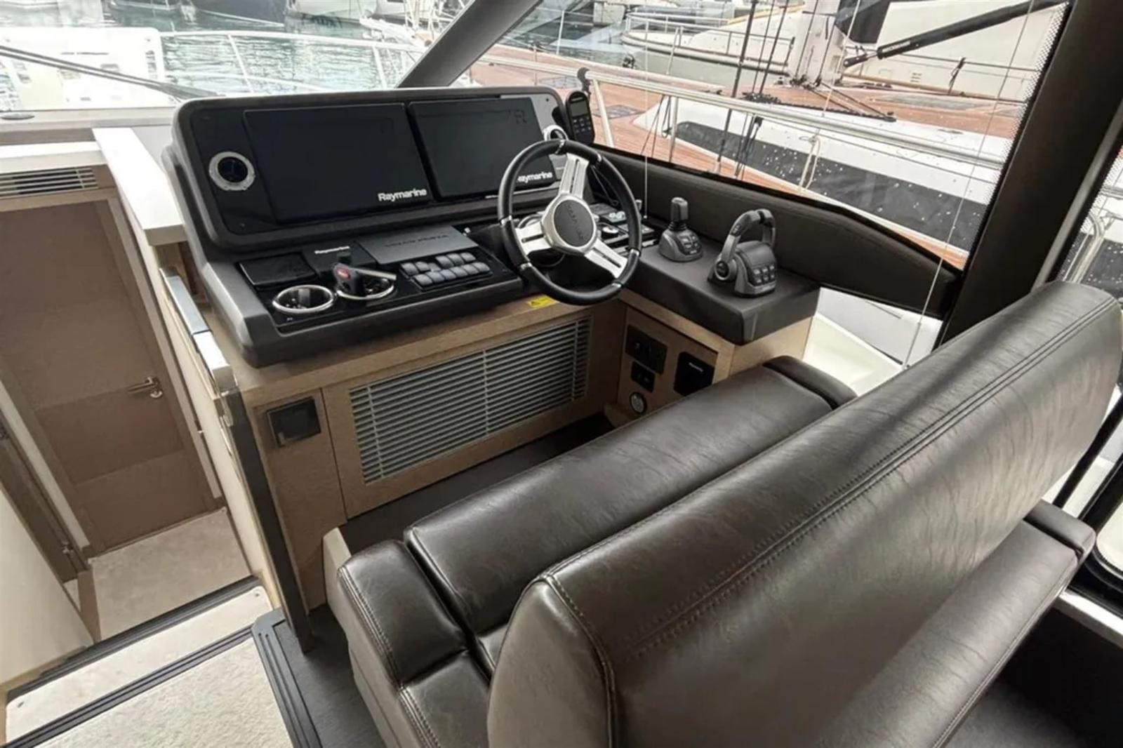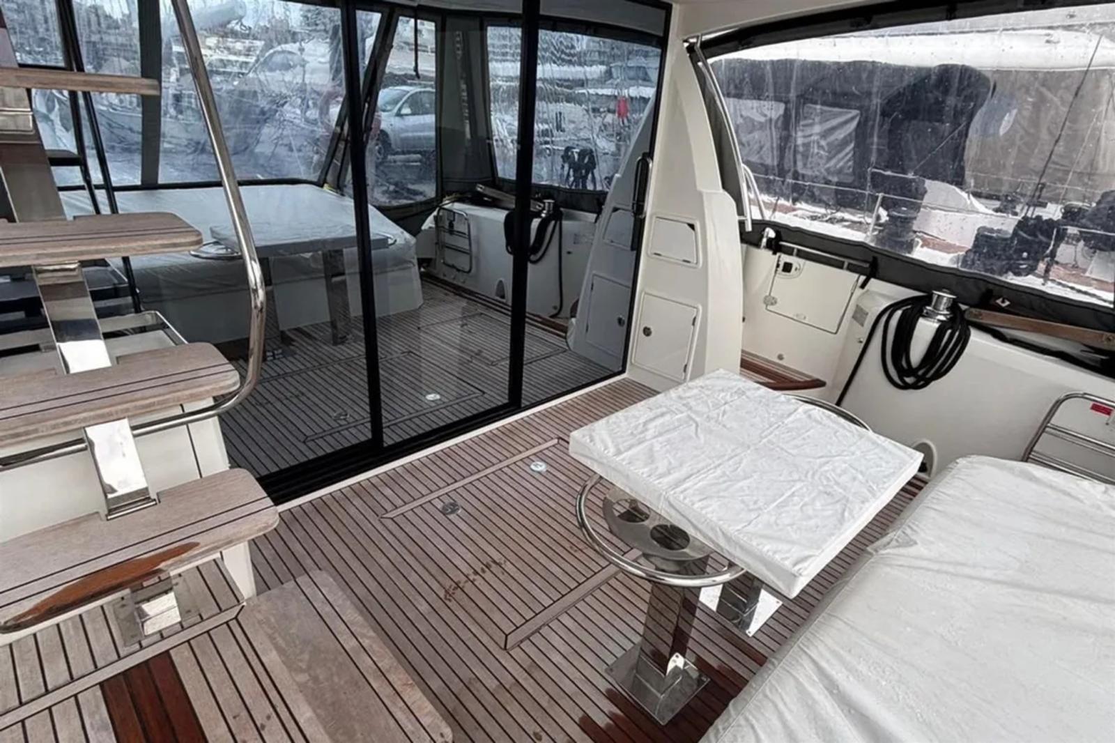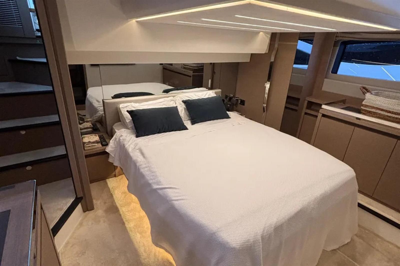 Engine Alarm, Bilge Alarm, Water pressure pump, 8 Batteries, Teak Side Decks, Deck Shower, Twin Steering, Directional Spotlight, Electric Flaps (ZIPWAKE), Tender Garage, Hard top (SUL FLYBRIDGE CON ILLUMINAZIONE LED), Fire Extinguishing System, Flaps Indicators, Underwater lights, Battery Monitor, Gangway (IDRAULICA), Platform (AFFONDANTE), 3 Automatic Bilge Pump, Entry door, Teak Cockpit, Shorepower connector, Water harbor connector system, Electric Windlass, swimming ladder, Stabilizers (SEAKEEPER NG6), cockpit table, guard rails with gates, Horn, Stern Winches, Bow Winches.